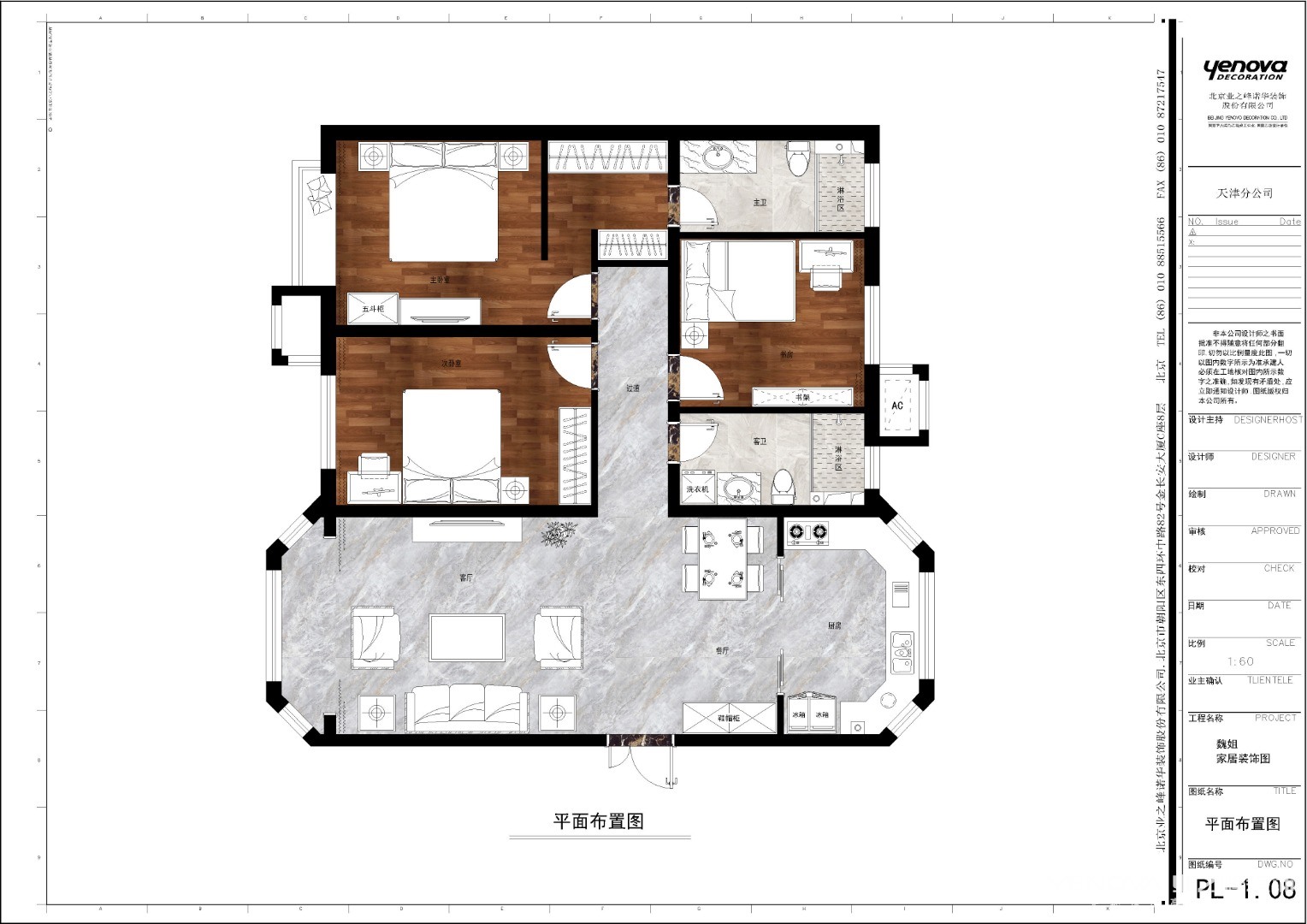 小区:天房天拖 面积:144㎡ 户型:三居 风格:新中式风格