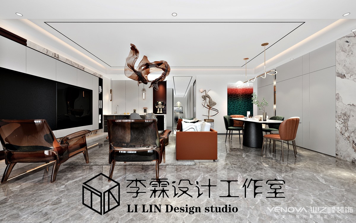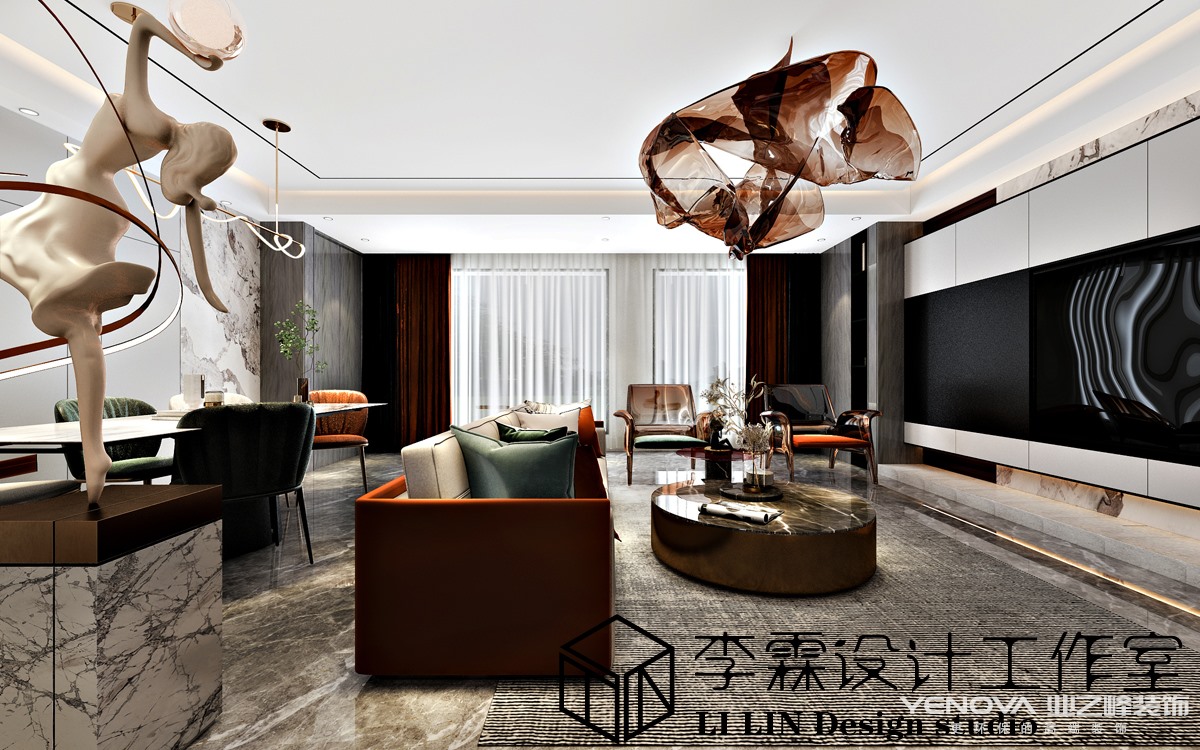 本案位于济南万科如园,建筑面积200㎡,设计风格定位现代轻奢,以精致软装凸显质感,增加细节感,用高级的中性色,奶咖,灰色,成为低调的奢华,饱和度强的软装使空间具有活力,大理石,黄铜,丝绒,瓷砖等不同的材质,让空间的奢华感上升一定的新高度,打造出深受年轻人喜爱的现代家居。