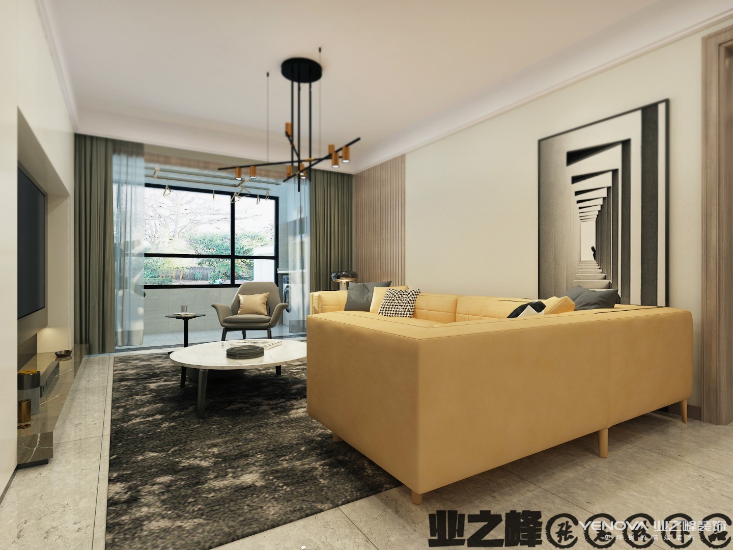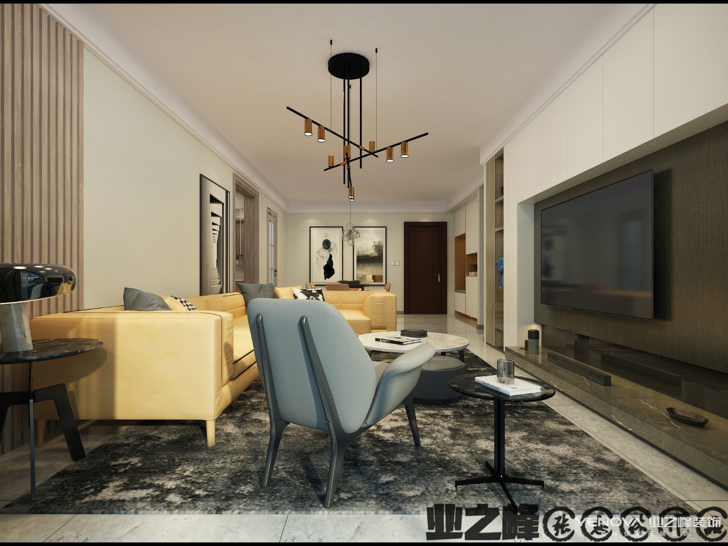 客厅整体以简约明亮为主,给人以放松舒适的感觉,简单的大幅画作增添了时尚简洁的感觉,简洁的家具和配饰与整体一致,家具的明亮颜色给人欢乐的生活气氛,同时在装饰效果上面也很不错。线条简约流畅,色彩对比强烈,能给人带来前卫、不受拘束的感觉。