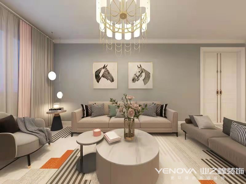 咨询电话:0791-86296016,本方案是围绕现代简约为主题,适合业主一家四口居住,以灰色为基调,点缀莫兰迪色色,做工精细、分寸得宜的布艺与金属兼顾时尚与感性,围绕几何线条图案,从艺术装置、柔软布艺到质感地毯,无不烘托着温馨曼妙的奢居氛围。