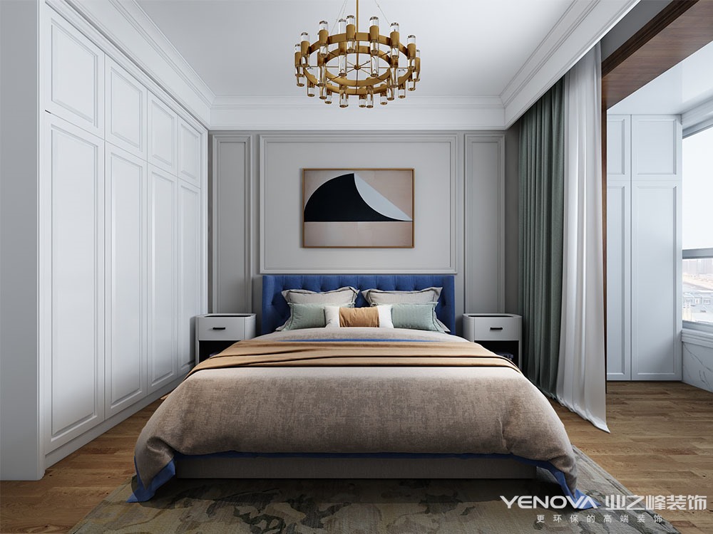 简约欧式风格的装修更注重庄严肃穆、优雅气质,能够将欧式风格的反复与复古风格的奢华完美沟通。本案设计注重装饰效果,用室内陈设品来增强文脉特色,运用软装家具来烘托室内环境气氛。带客厅的主要色调为米白和蓝色,少量白色作为糅合,使色彩看起来更加明亮。