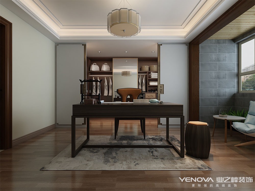 7. 此案为新中式风格设计,新中式古典主义风格十一中国传统古典文化作为背景,使用红木、盆景、水墨画、紫砂壶等一些独具中式特征的艺术品和元素体现出名誉的东方之美。此案例空间是传统与现代风格的碰撞,以现代的装饰手法和家具,结合古典中式元素,来呈现出一种亦古亦今的空间氛围。