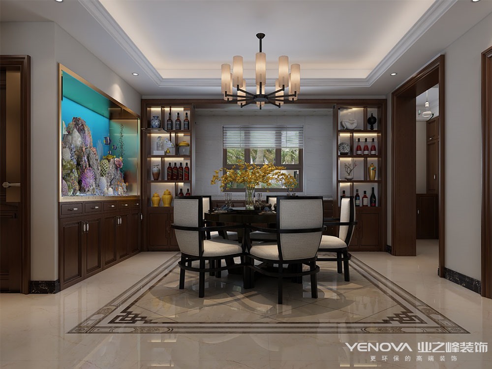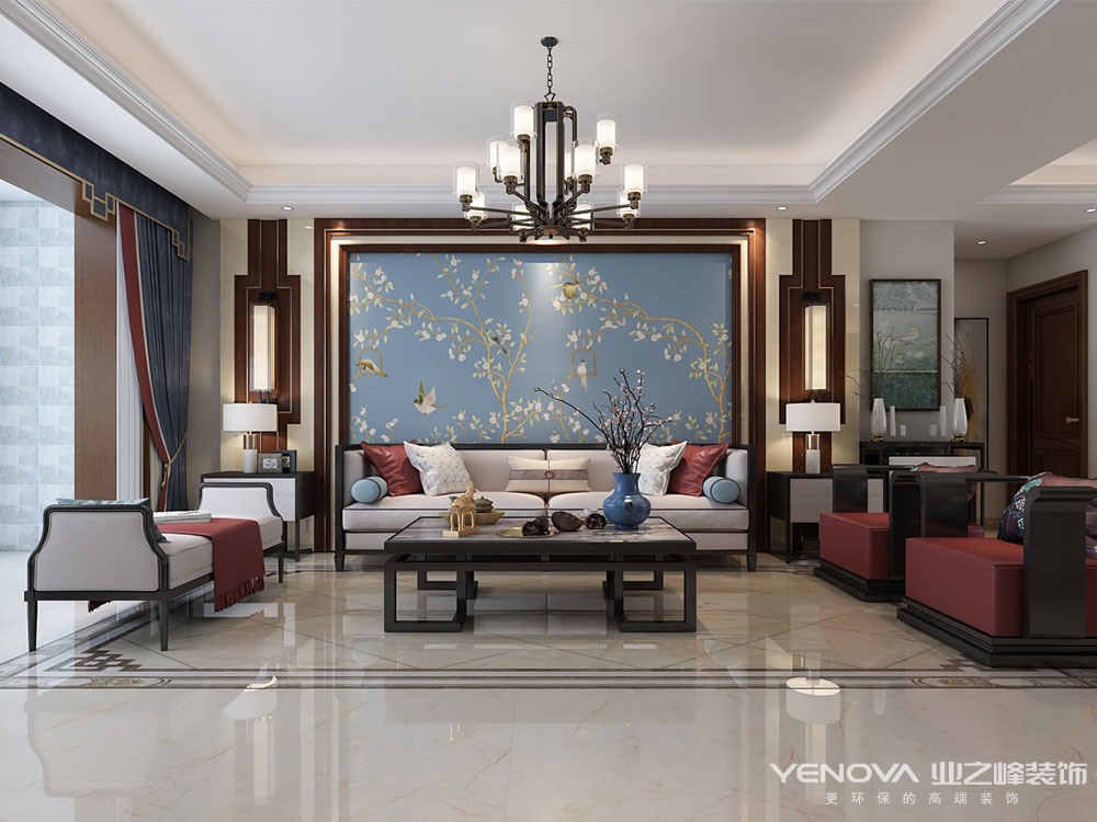 新中式是传统中国文化与现代时尚元素在时间长河里的邂逅,此案以内敛沉稳的传统文化未触发点,融入现代设计语言,在室内造景、使用盆景、壁画以及独居东方特色的水墨画等元素,为现代空间注入凝练唯美的中国古典风韵,它不是纯粹的元素堆砌,这种风格保留了传统文化的魅力,有体现了时代特色。