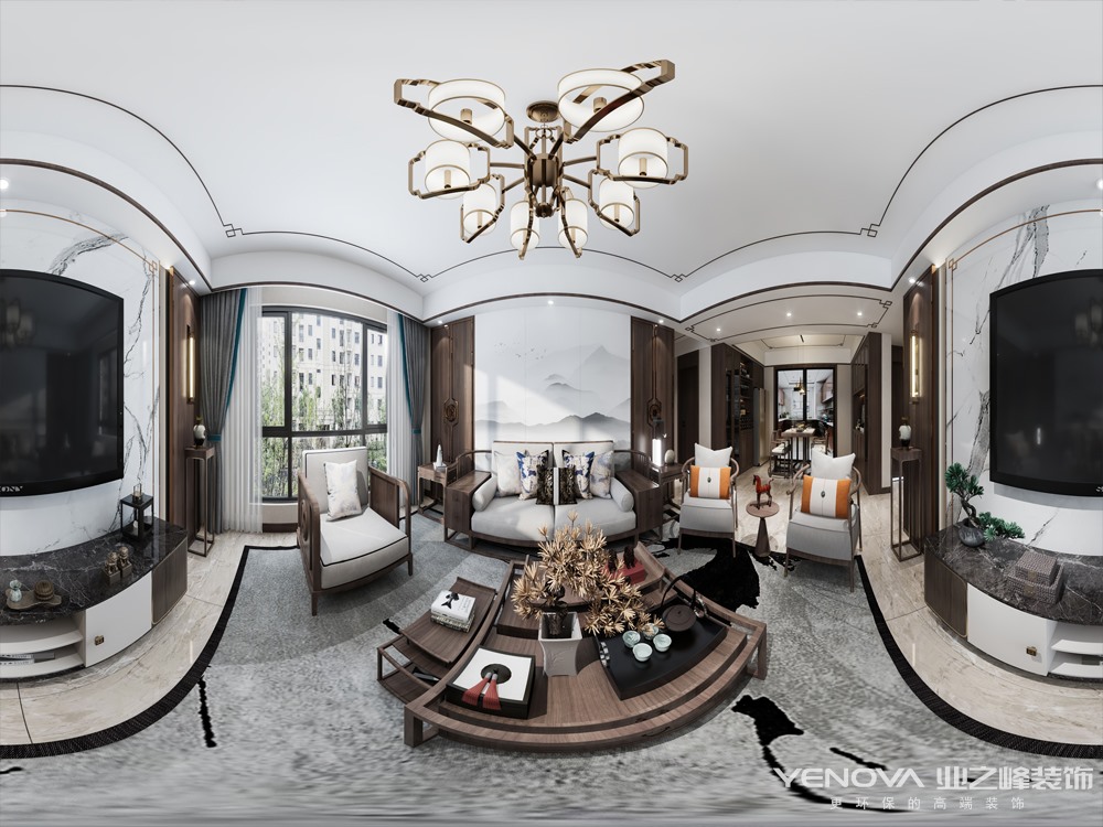 此设计方案风格定为新中式风格,新中式风格是对传统中式风格的更新与传承,用现代的符号将中式的神韵体现出来。本案例设计以原木色为主,暖色调做主调,在家具配饰、装饰挂画上用少量冷色调和。灯具的选择上以简洁的圆形为主,整体空间营造一个禅意新中式空间。