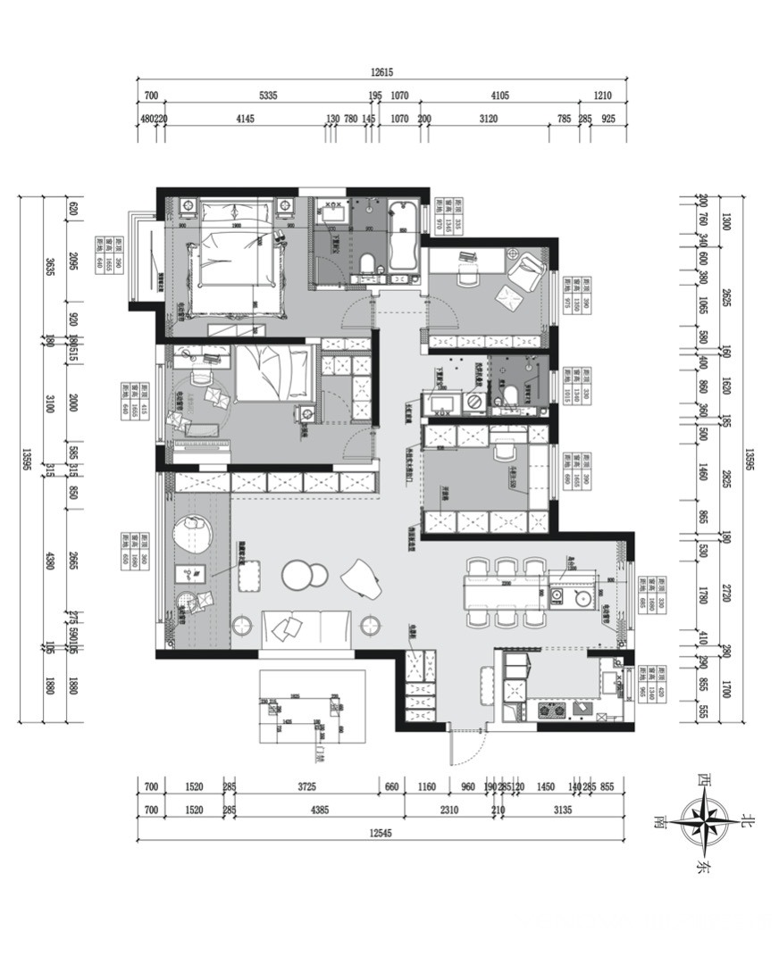 另外,灰色也是一个比较耐脏的颜色,颜色高级的同时也方便打理,完美的符合了业主对高品质生活的追求,也找到了业主对家的归属感。