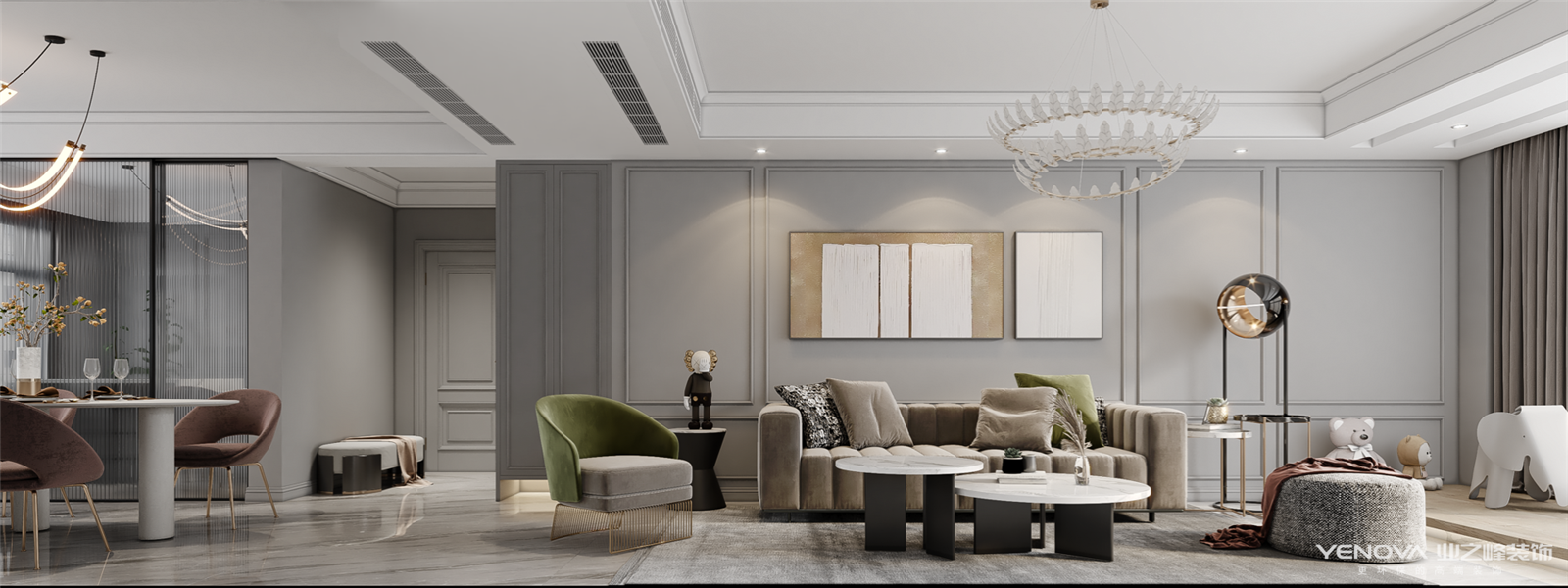 灰色,是现代轻奢风格比较常用的色调,大面积的灰色装饰,一般常给人一种高档、雅致的奢华气息。