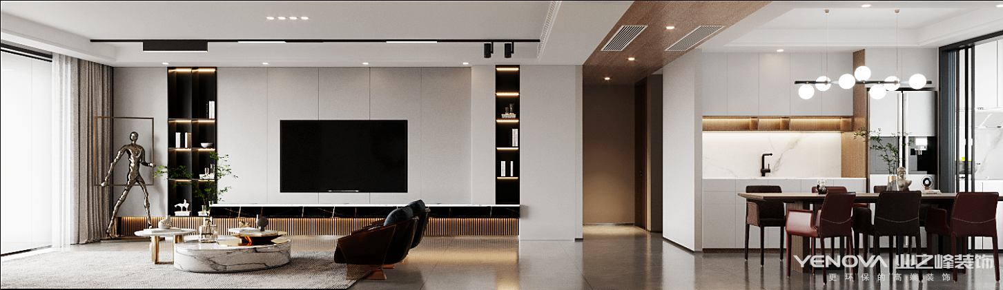 现代简约风格装修,无主灯设计让沉稳明亮尽显