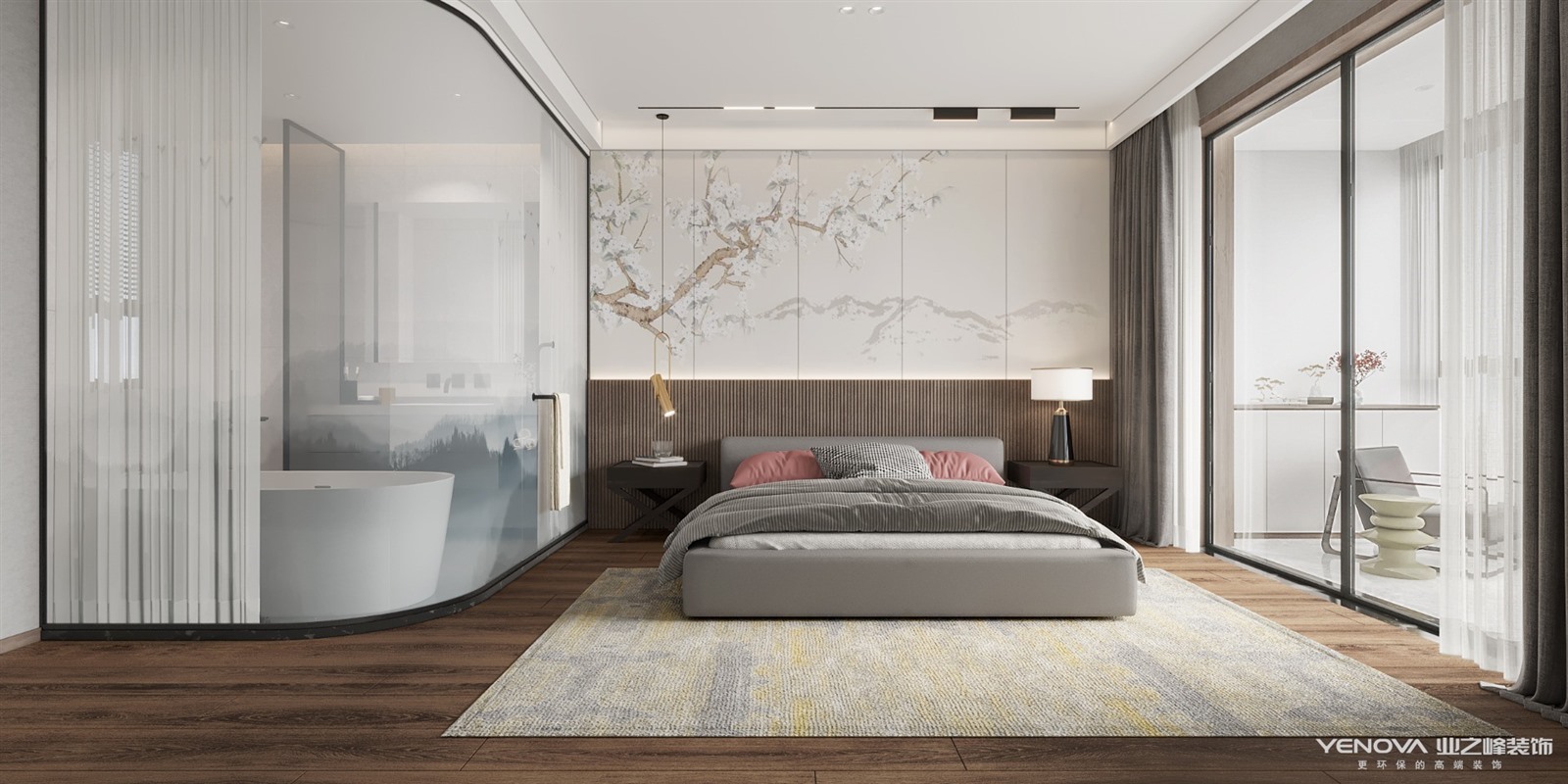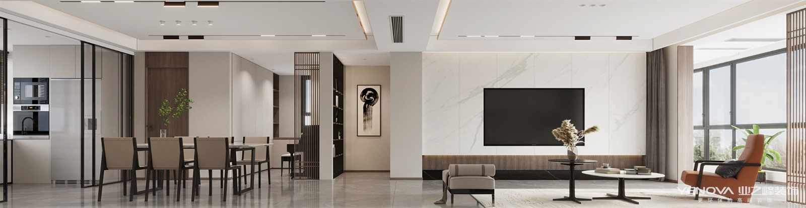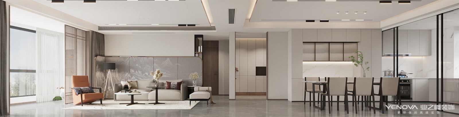 此案位于咸阳湖边,长阳台视野开阔,风景优美。空间处理上,扬长避短,空间注重光影,以现代的审美重塑中式之美。