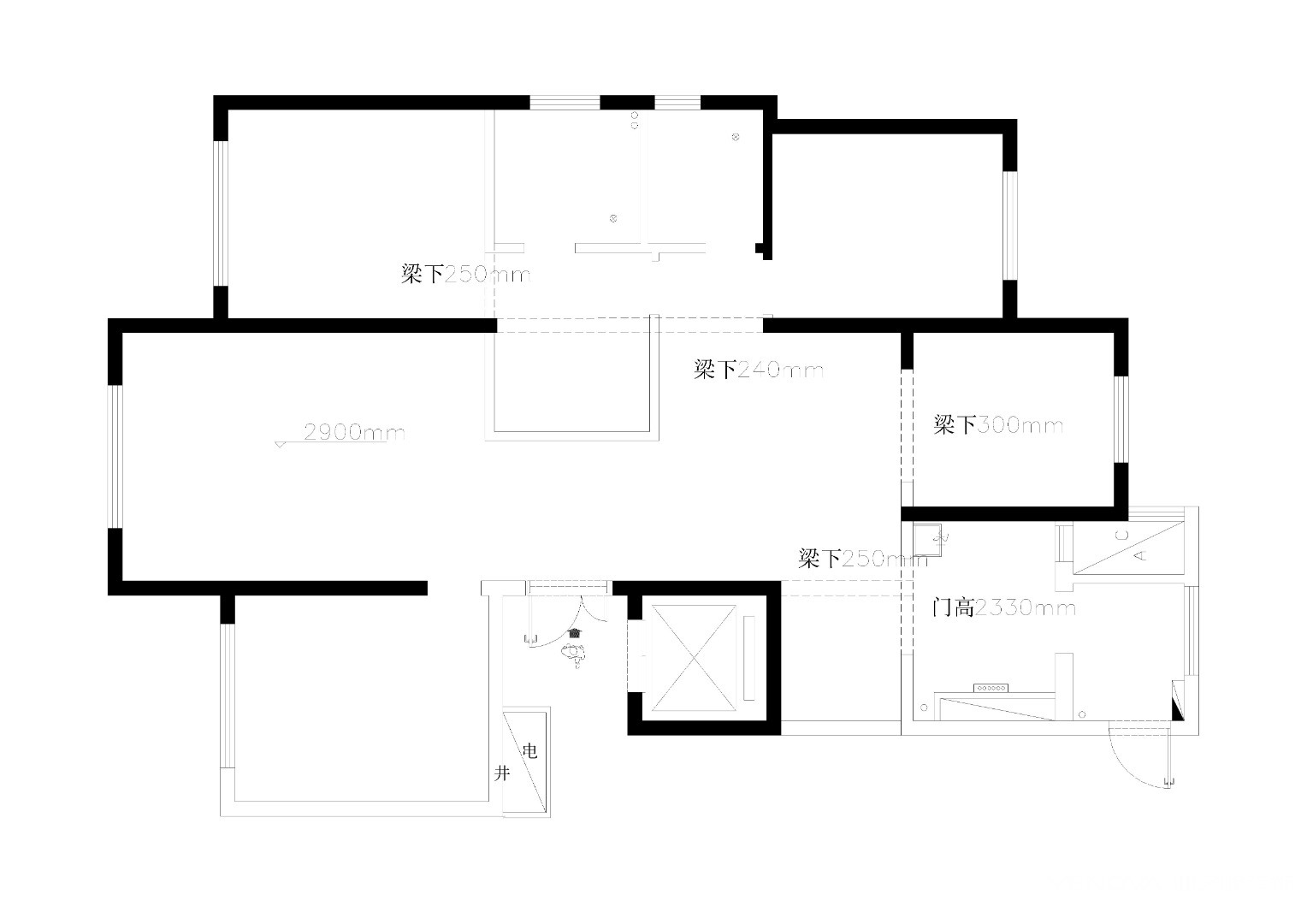 此案三代人居住,对于储藏空间需求比较大。故保留原有主卧衣帽间做储藏空间。对于北向房间,考虑其特殊位置,做半开放式书房,优化了公区的采光通风。