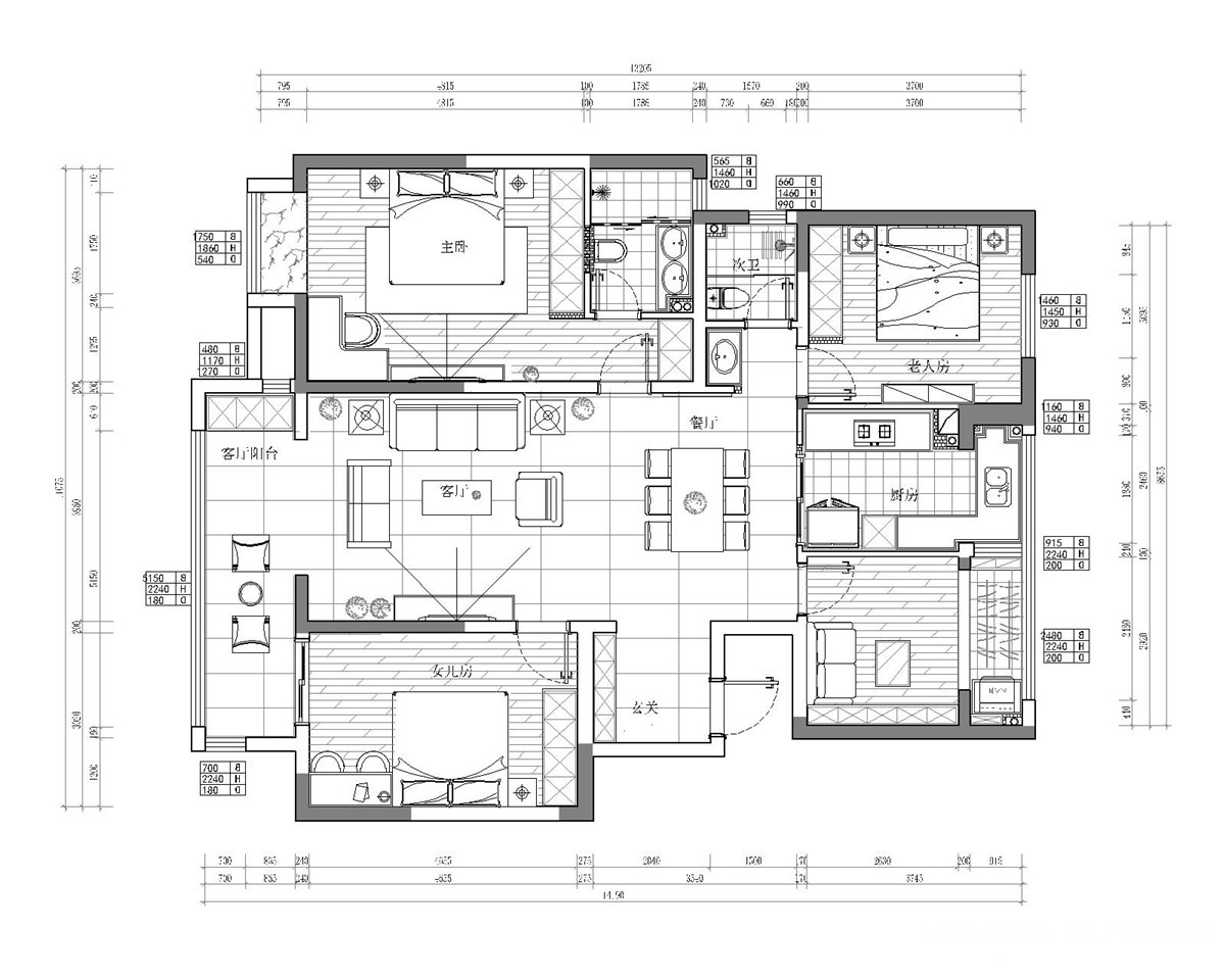 小区:金地中心风华 面积:145㎡ 户型:三居 风格:现代简约风格