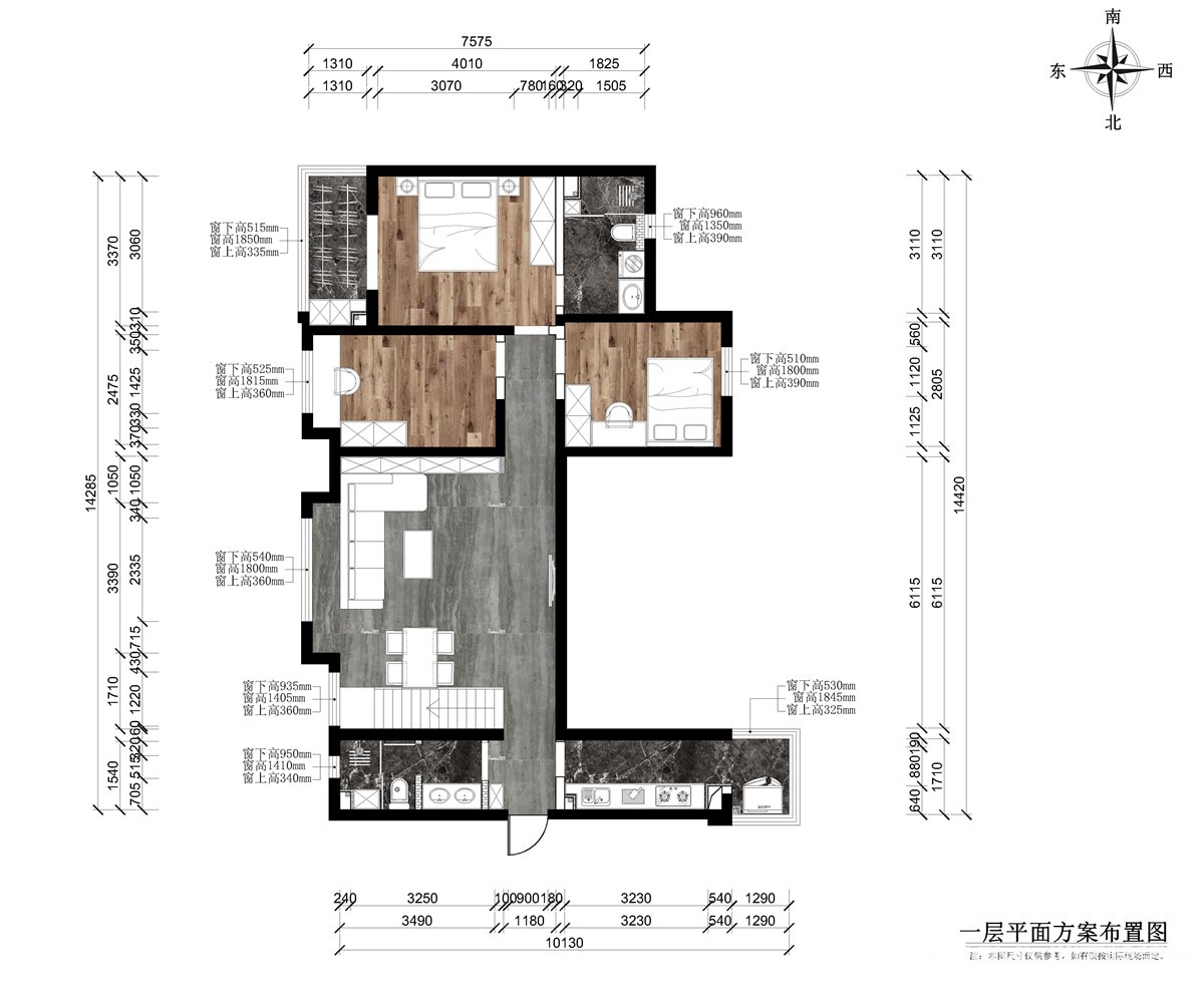 小区:龙湖紫都城 面积:130㎡ 户型:三居 风格:轻奢风格