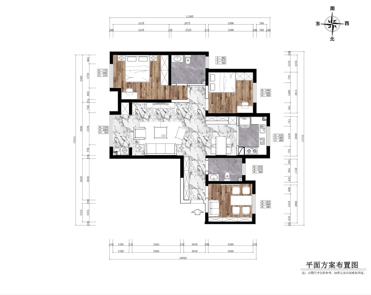 本方案为现代简约风格,是一套三室两厅一厨两卫的案例设计,是父母给孩子装修的婚房,其都是老师,希望在工作繁忙之余在家享受到片刻的安静与温馨。