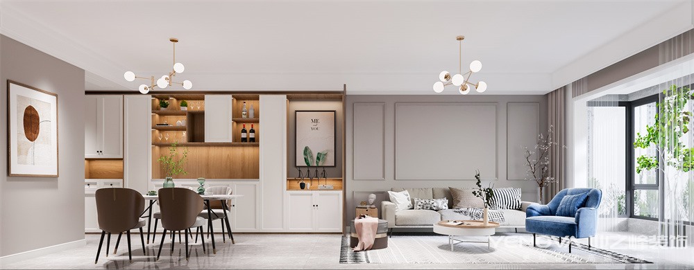 小区:蓝光公园华府 面积:80㎡ 户型:二居 风格:现代简约风格