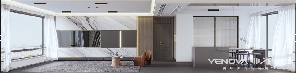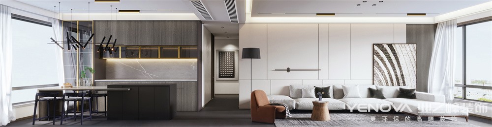 客餐厅为一体的挑高横厅,光感灵动,隽永舒怡。陈设细节以艺术手法渲染出独立自由的生活语境,情韵诗意,表达出一种在繁华中回归宁静的意味,更是主人生活状态、气度胸怀的呈现。客餐厅为一体的挑高横厅,光感灵动,隽永舒怡。陈设细节以艺术手法渲染出独立自由的生活语境,情韵诗意,表达出一种在繁华中