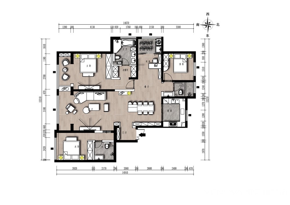 小区:大华公园世家 面积:210㎡ 户型:四居 风格:现代简约风格