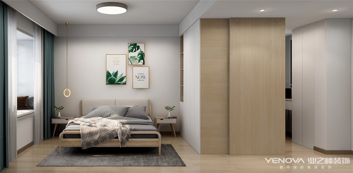 主卧空间,采用了白色墙面搭配大面积原木色,简单的造型加上高度统一的色彩搭配,创造出清爽舒适的居住感受。