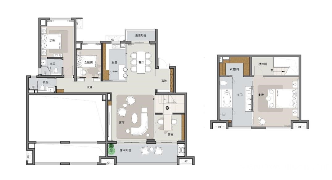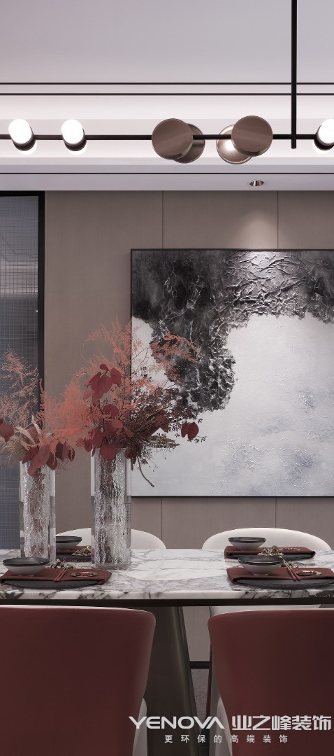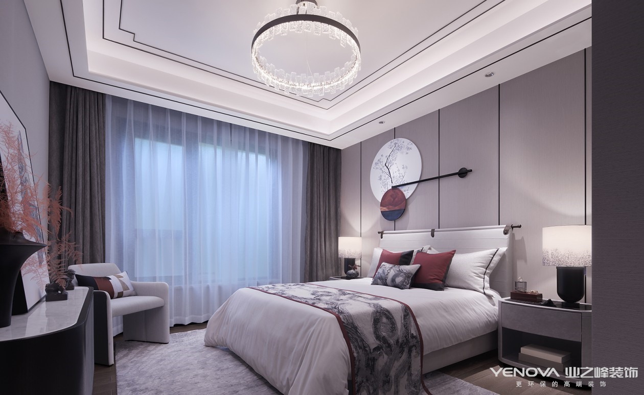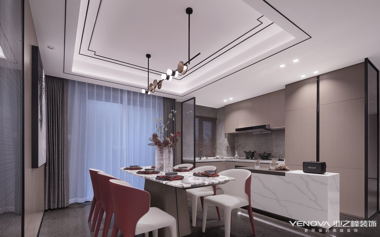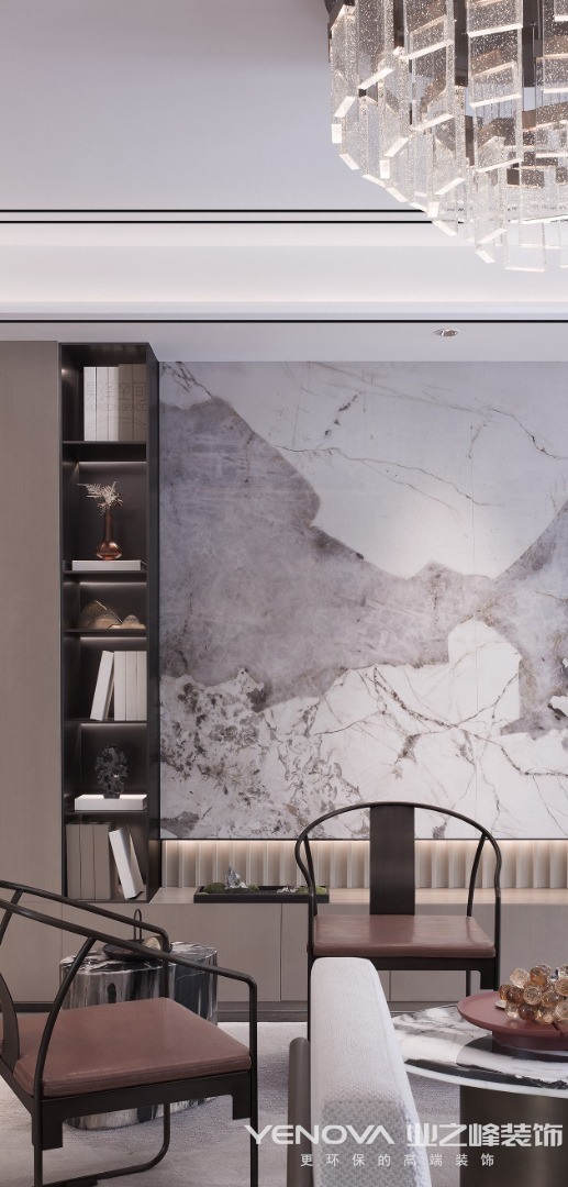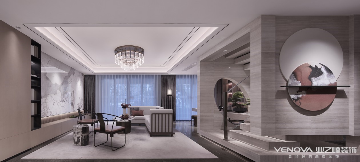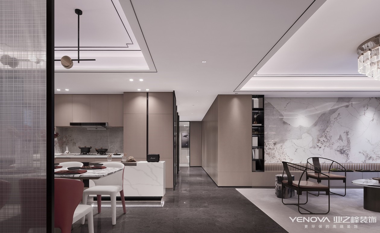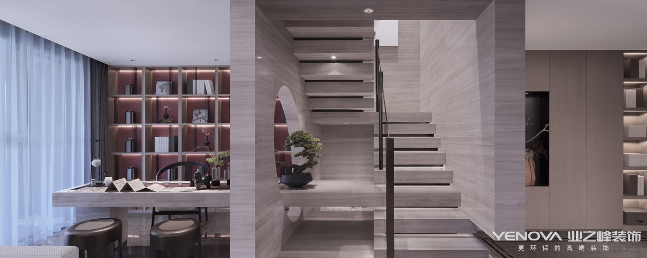 本案居住着一家四口,业主是一对五十多岁夫妻。他们希望家是充满爱与乐的温馨空间,同时也应满足一家人的日常生活需求。设计师通过对原户型合理改造,增强空间互动性,为家庭交流创造了更多机会。桃花源中的诗意之境,采用含有中国风融合现代审美的元素将整个空间串联,把装饰简化,以空造实,采用大面积木与石的干净墙面营造繁简有序的雅致宁静之意。方寸间展现生活本真,打造诗意栖居的理想之家。书房一整面书墙在沉稳的中国红衬映下叙述出浓厚的历史与人文沉淀,中式园林的借景手法在这里体现得淋漓尽致,在光影烘托下渲染出一室东方风雅。家具以浅色系为主,与空间有着极高的契合度,配以棉麻、皮质融于一体,营造出一个诗意雅致又充满细节的空间。儿童房重点在于营造一种具有记忆点的空间氛围让生活轻松有趣,没有过多的装饰,简洁大方适应孩子不同成长阶段的需求。