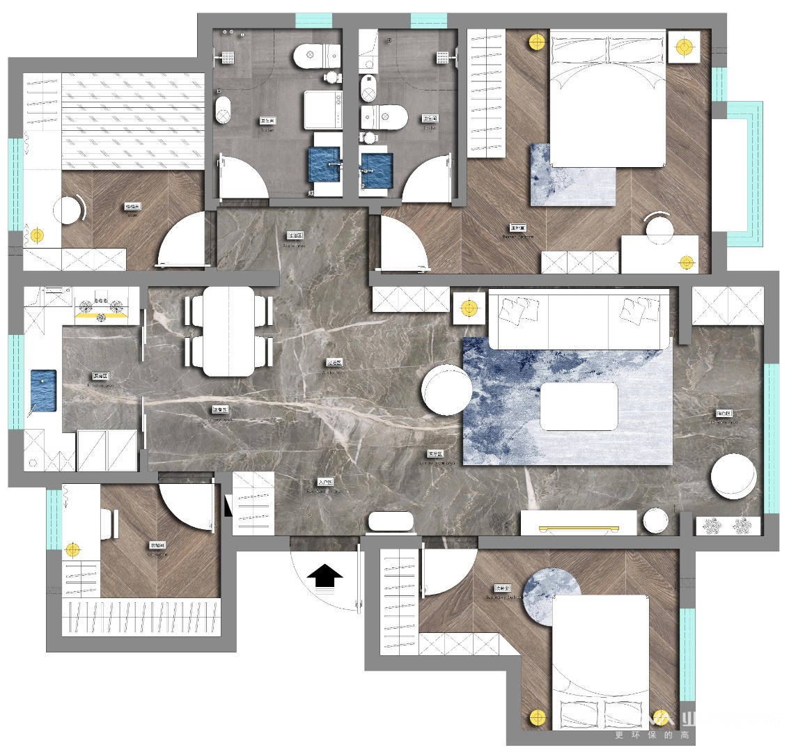 本次案例从整体布局为出发,四间卧室,每间卧室面积不是很充足,后期保留三间居住卧室,留有一间作为后期的功能衣帽间及梳妆间,造型方面采取当下流行的简洁处理方式,双层石膏板装饰线条,使房屋后期视觉效果有层次美,地面瓷砖地板的传统运用,增加空间的变化性,软装,是后期整体搭配的一项重点,家具软装饰品的修饰为家的生活增加生活氛围。