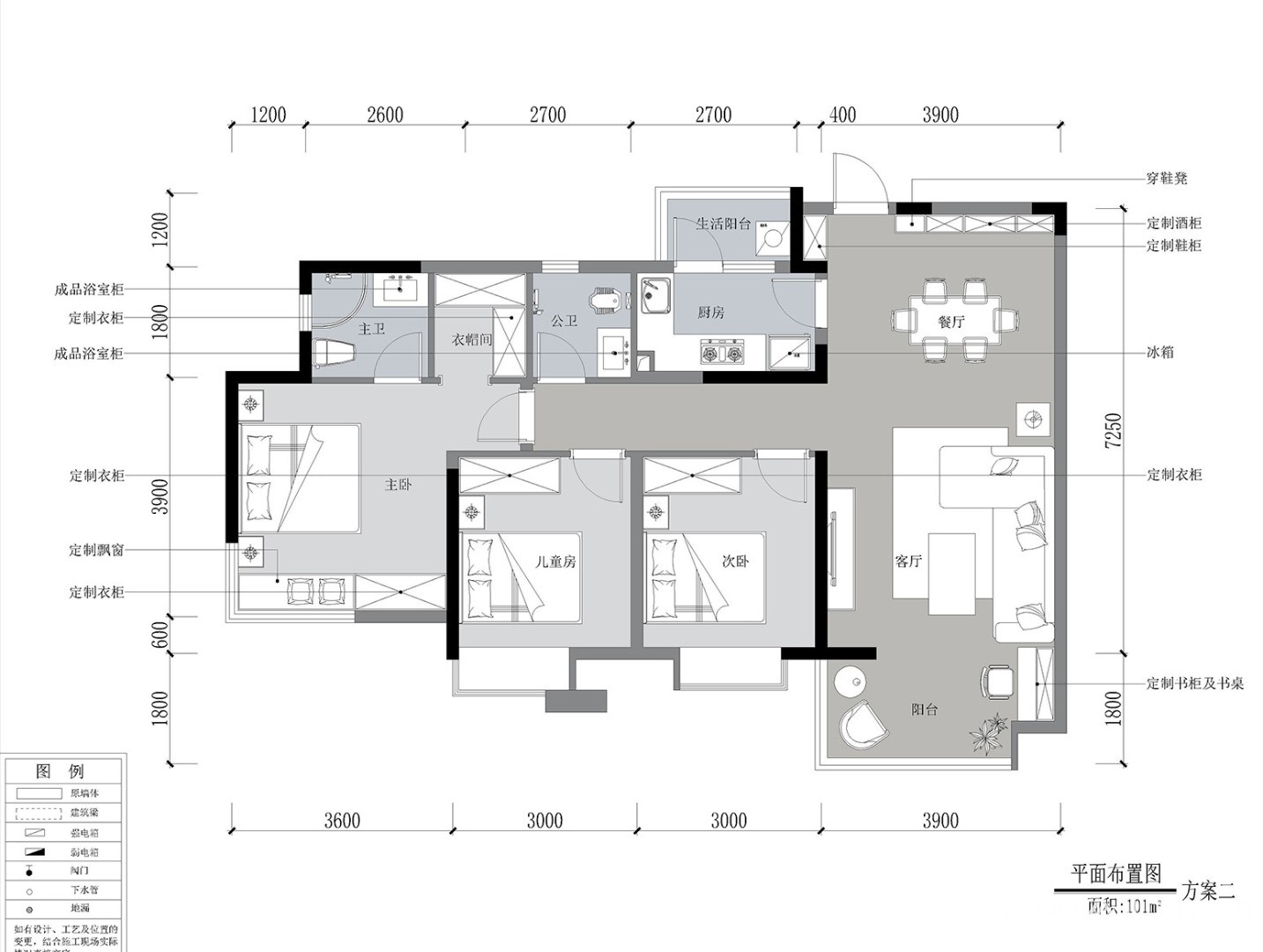 小区:邦泰国际社区 面积:101㎡ 户型:三居 风格:现代简约风格