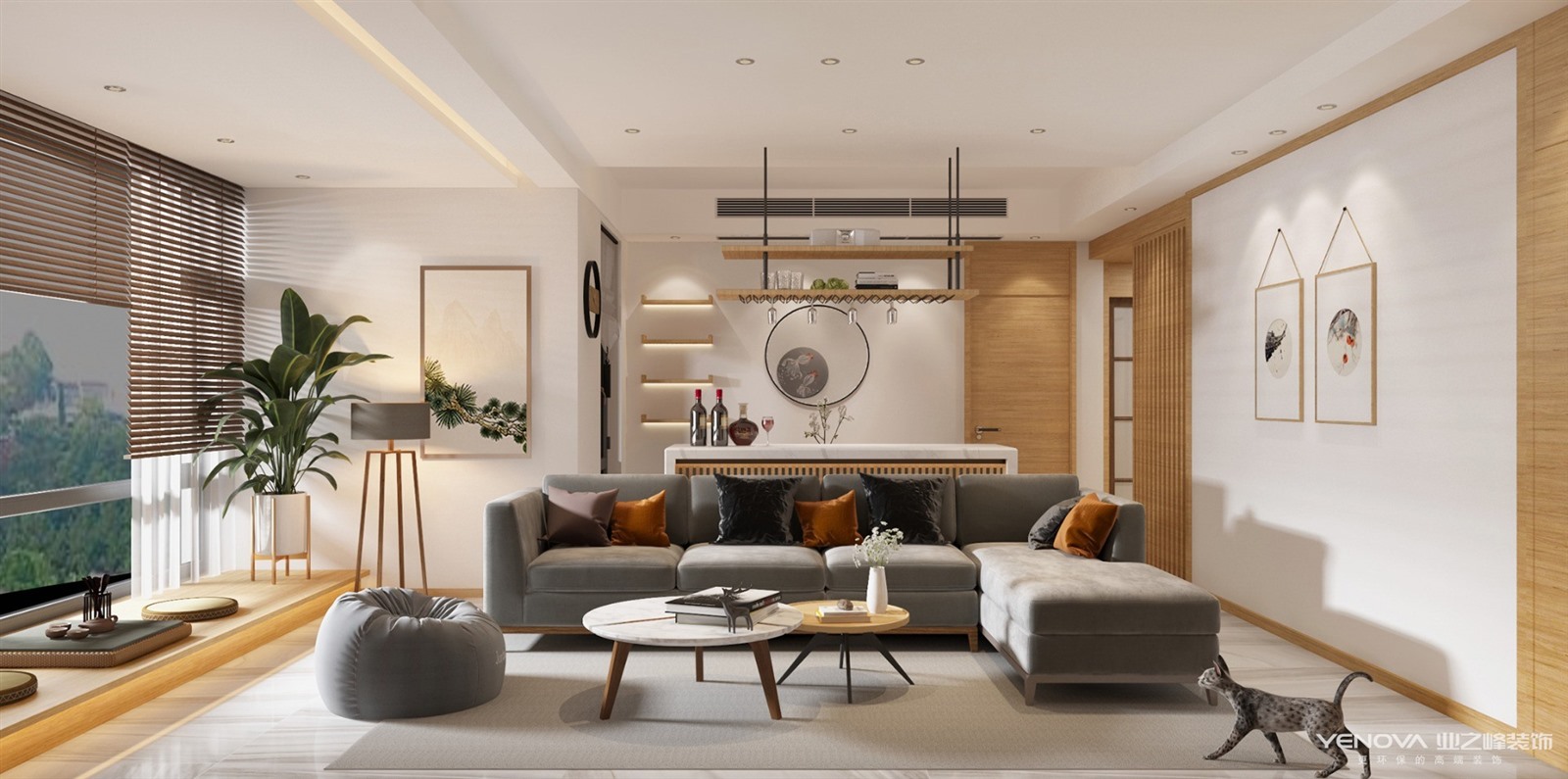 所以我们以大白墙和原木为主题,在软装陈设部分,加入业主喜欢的日式元素、绿植等自然元素融入,