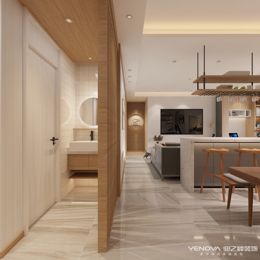 入户门口及公卫浴室柜都内嵌了感应式夜灯,实现晚上回家开门换鞋区底部灯光自动点亮。