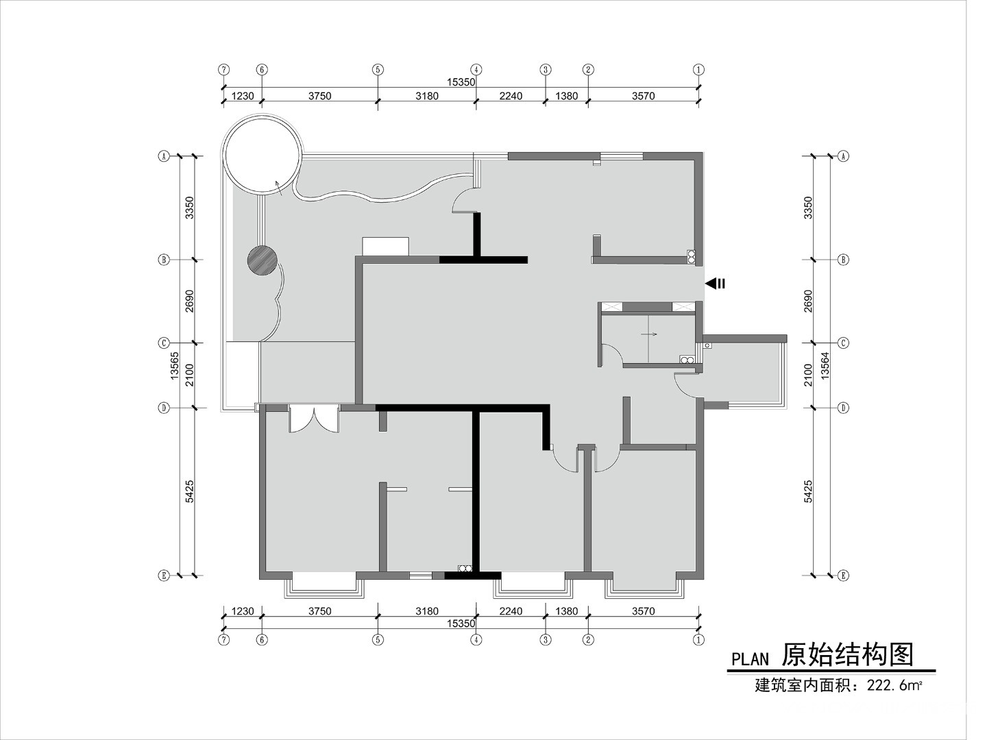 :这是一套邻水的住宅,实际面积222.6平,是一个需要翻新的房子。业主需要打破以往的布局