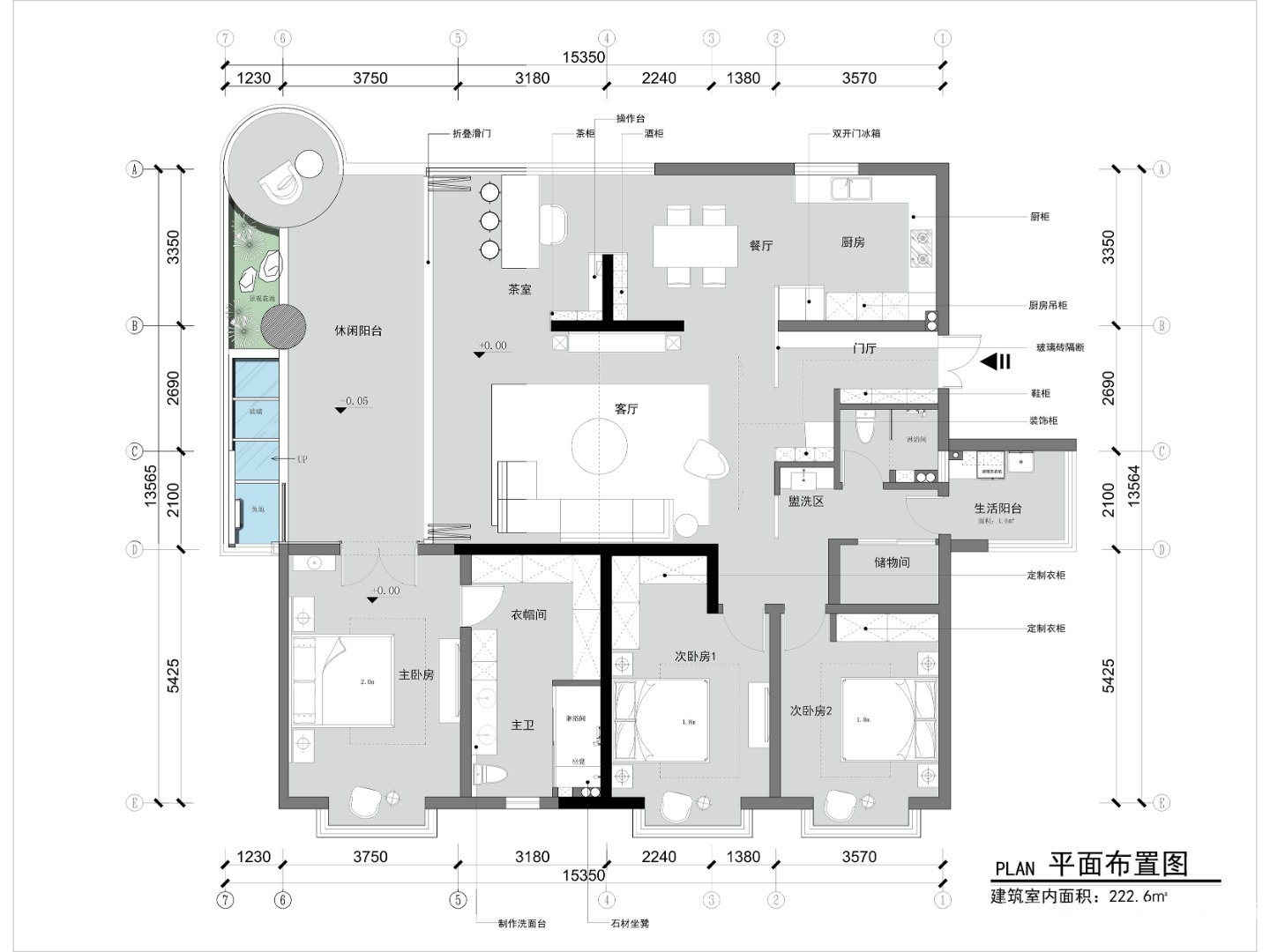 小区:天和苑 面积:222㎡ 户型:三居 风格:轻奢风格