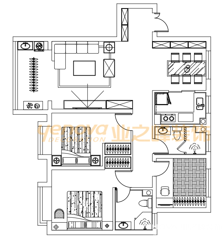 小区:空港澜庭美地 面积:118㎡ 户型:三居 风格:新中式风格