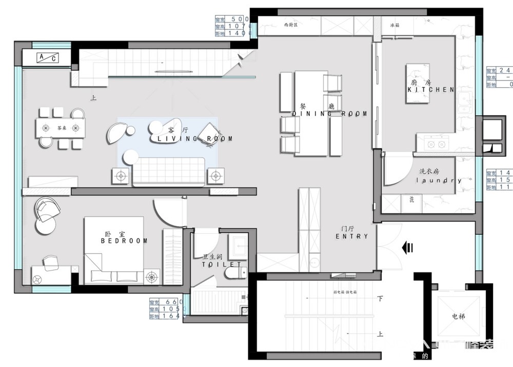 客餐厅:客餐厅是家人在一起交流玩耍的地方,柔软的布艺沙发、松软的地毯、温润的木质家具,给这个家创造了一个爱的能量场。清晨,伴着食物的清香开始充满能量的一天;傍晚,窝在沙发边看电视、说话、看书,缓解一天的疲惫。