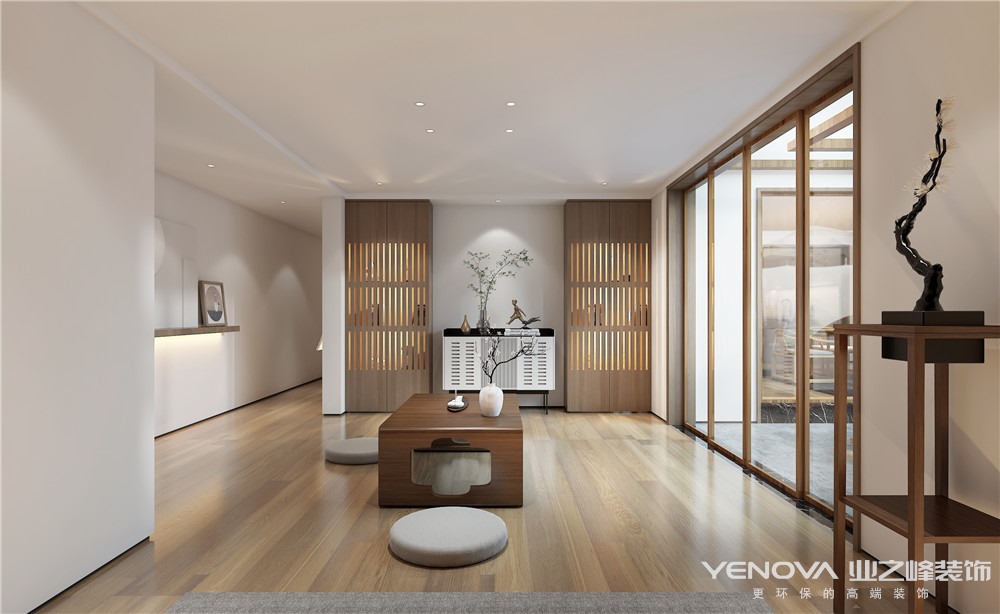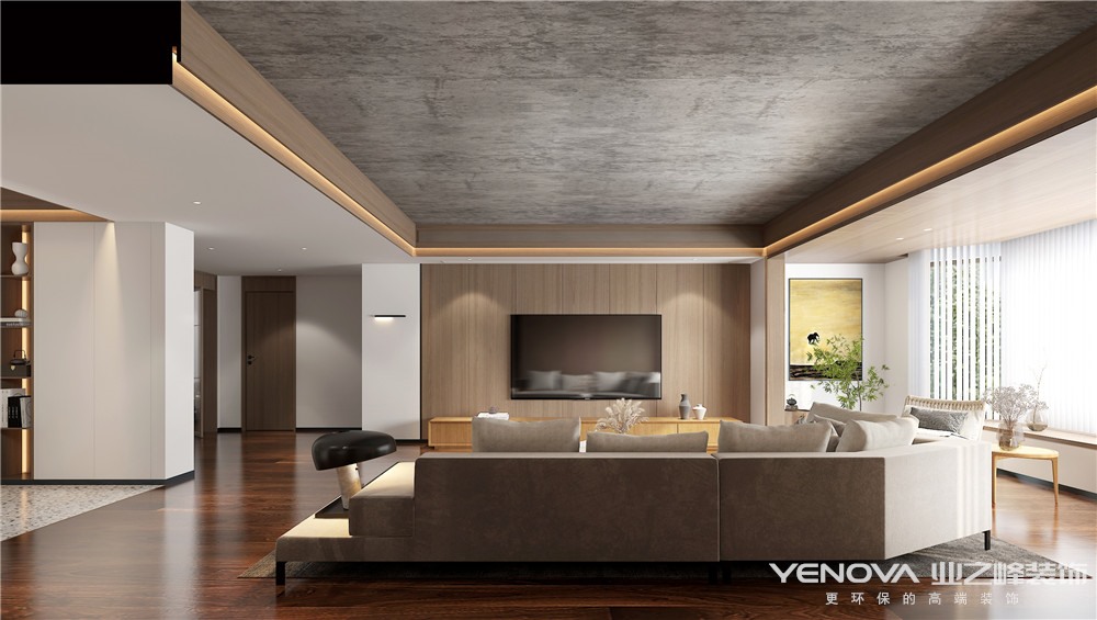 客厅:客厅以木色为主,通过木地板与木纹面板的装饰,减少视觉的刺激。天然给空间提供一种温度,能融洽氛围,提高愉悦性。身心俱疲的时候最好的选择是待在一处安静的居所,享受静谧的环境,极目看去是整齐而又干净的事物。这是心灵停歇的地方,肉体放松的所在。就像那些治愈系的电影,总能在人烦躁不堪时让起伏不定的心情平静安稳下来。而对于亲近自然的人来说,若生活在绿意盎然的家中必能让生活增加一抹绿意。