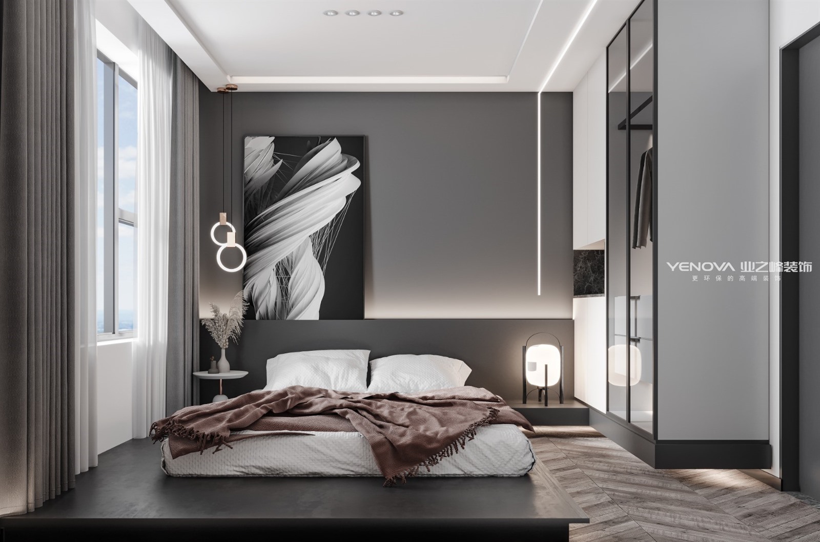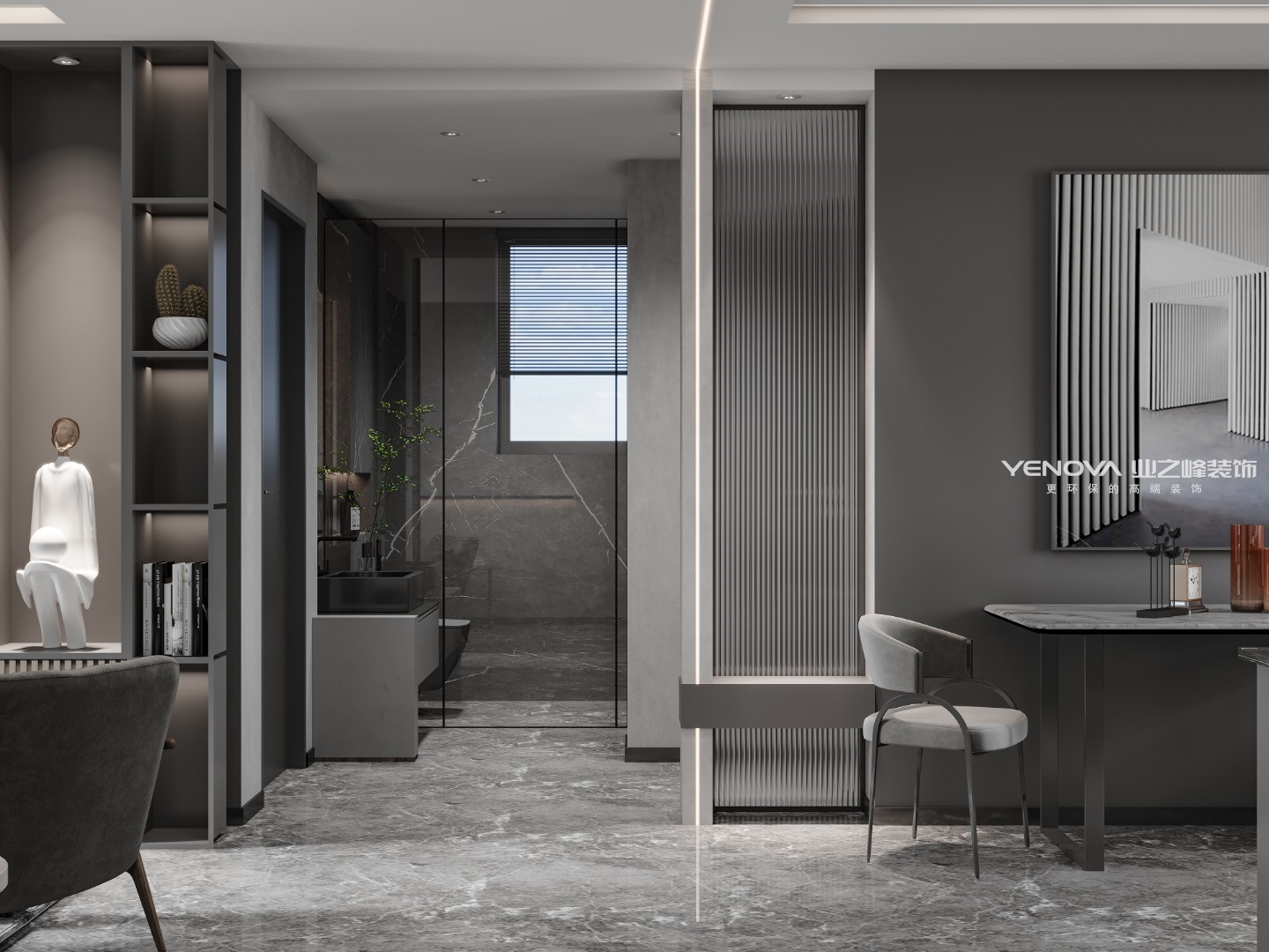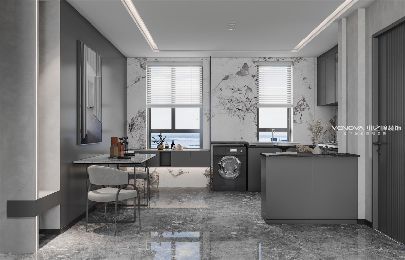 本案是98平的三室户型,业主喜欢现代极简风格,颜色以黑白灰为主,在装饰上做减法,减浮华,最后留下的便是本真生活,无主灯设计,简洁开阔,提升了客厅的艺术感。三室改为两室增加了餐厅空间,与客厅衔接,空间更加通透。开放式的厨房,让客餐到厨房的动线更为流畅。灰色的柜体与黑色的操作台,体现空间的高级感,层次感。