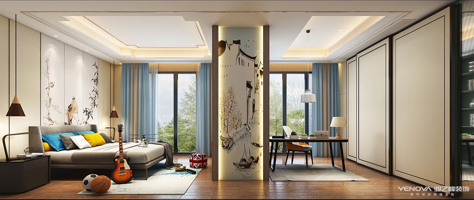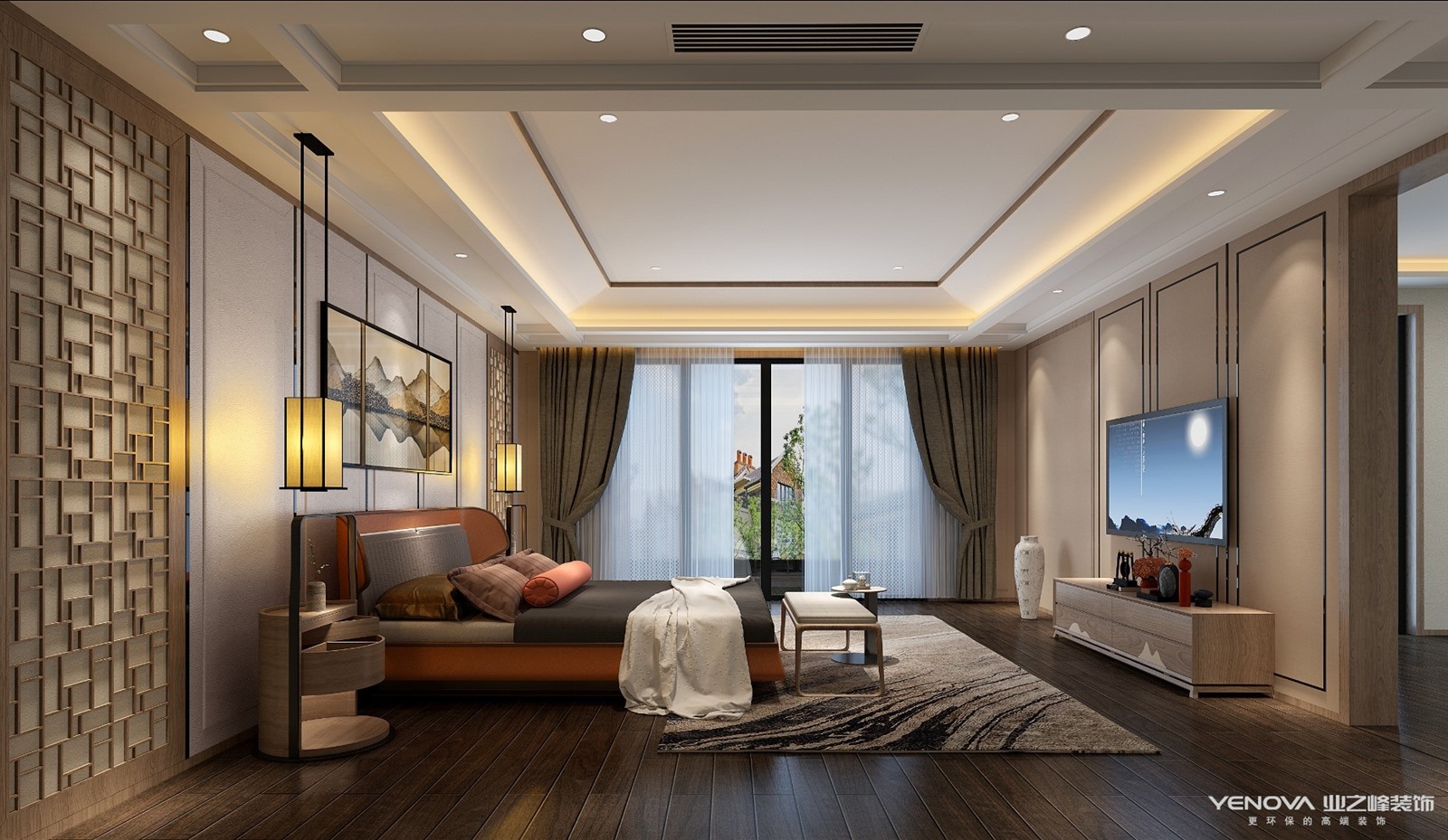 新中式,韵味十足。中式元素与现代材质的巧妙兼柔,家具、窗帘、布艺床品,相互辉映,再现了移步变景的精妙绝伦。在设计中将中式的经典元素提炼并加以丰富,同时改变原有空间布局,给传统家居文化注入了新的气息。