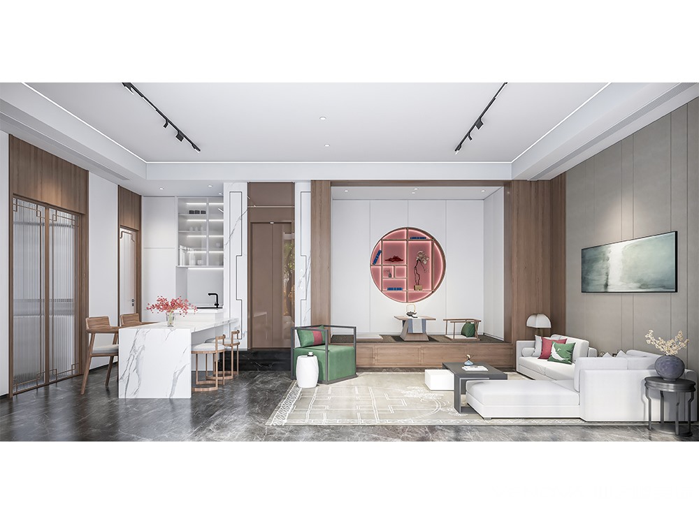 新中式风格不是纯粹的元素堆砌,而是通过对传统文化的认识,将现代元素和传统元素结合在一起,以现代人的审美需求来打造富有传统韵味的事物,让传统艺术在当今社会得到合适的体现。