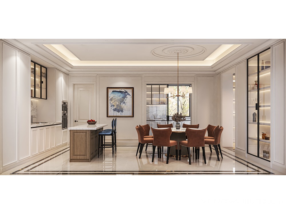 在形式上以浪漫主义为基础,极致的比例与合理的对称性,使得空间整体端庄大气。多用石材来提升空间的奢华感。造型比例要求苛刻,以现代的审美观念重塑欧式风格,端庄典雅但又不显土气。精益求精的细节处理,将空间的美感无限放大。深度汲取欧式风格精华,气韵由内而外。