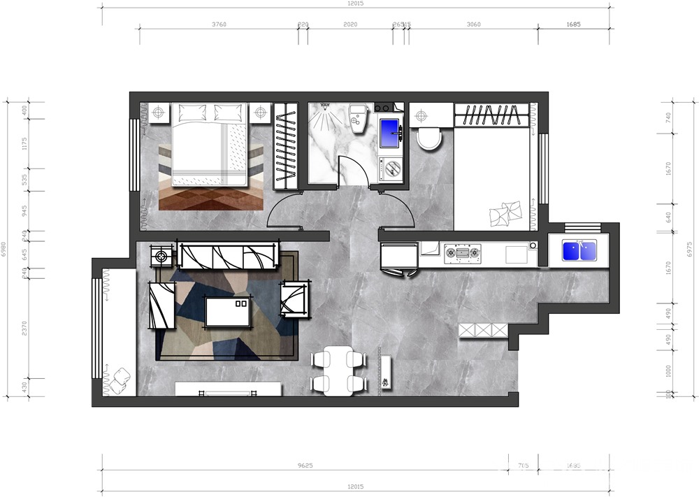 小区:金茂光明城市 面积:97㎡ 户型:二居 风格:现代简约风格