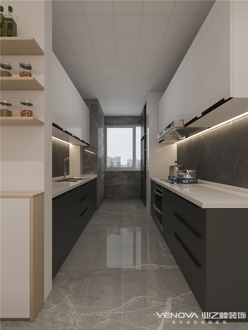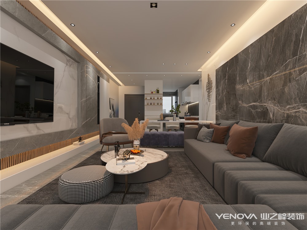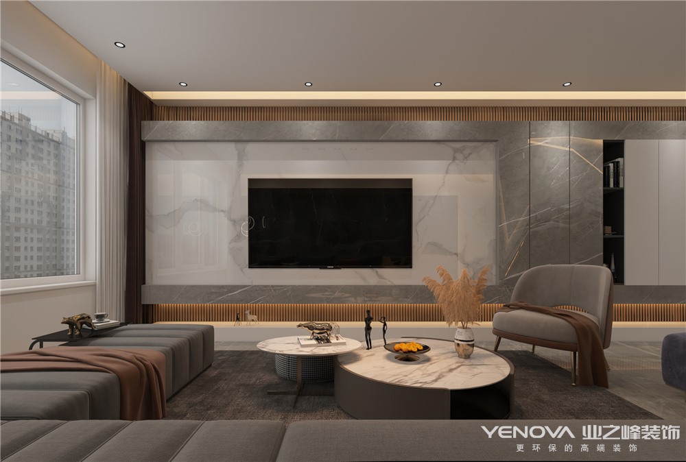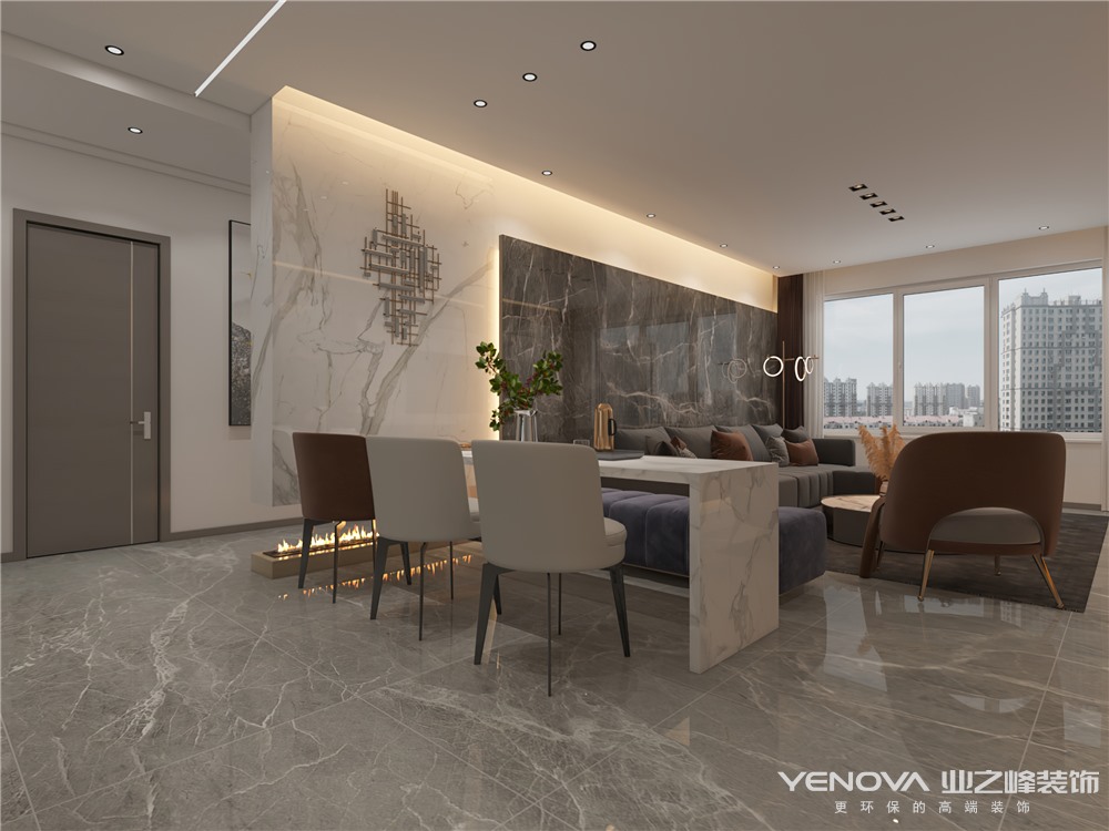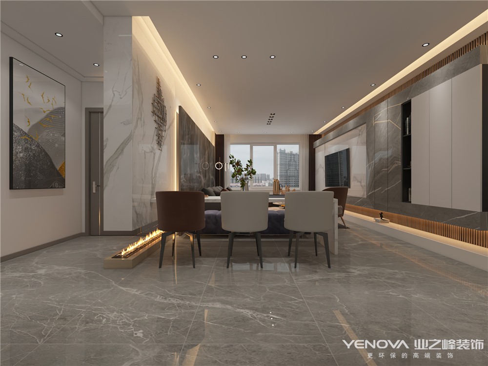 打破原始固有思维,客餐厅融为一体,增添日常和家人的互动性。就餐位置不止是吃饭,更多的一个多功能区,女业主平时爱好做手工,家人在看电视。不同的家庭成员都可在此空间自得其乐。多么惬意的生活啊。电视背景墙做成收纳和理石结合,理石的质感和木质的餐边柜结合,整体装饰和实用性的结合。