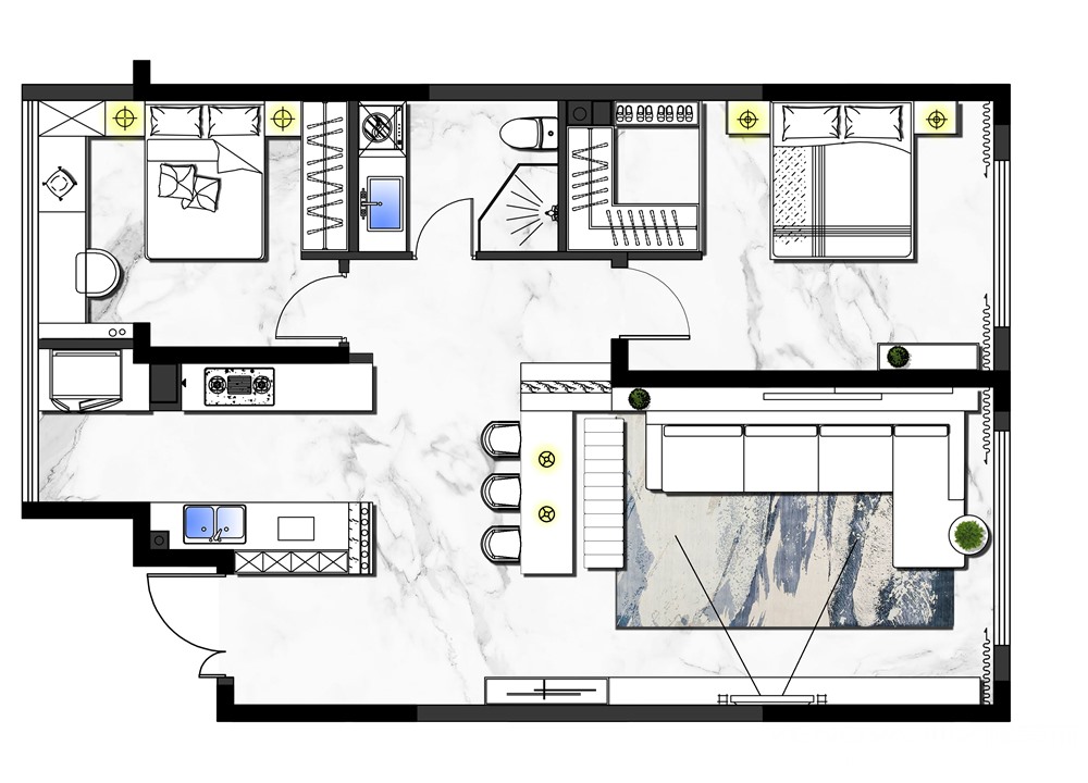 小区:清水路苑 面积:106㎡ 户型:二居 风格:现代简约风格