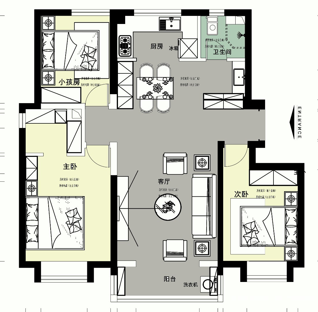 小区:格调松间 面积:126㎡ 户型:三居 风格:现代简约风格
