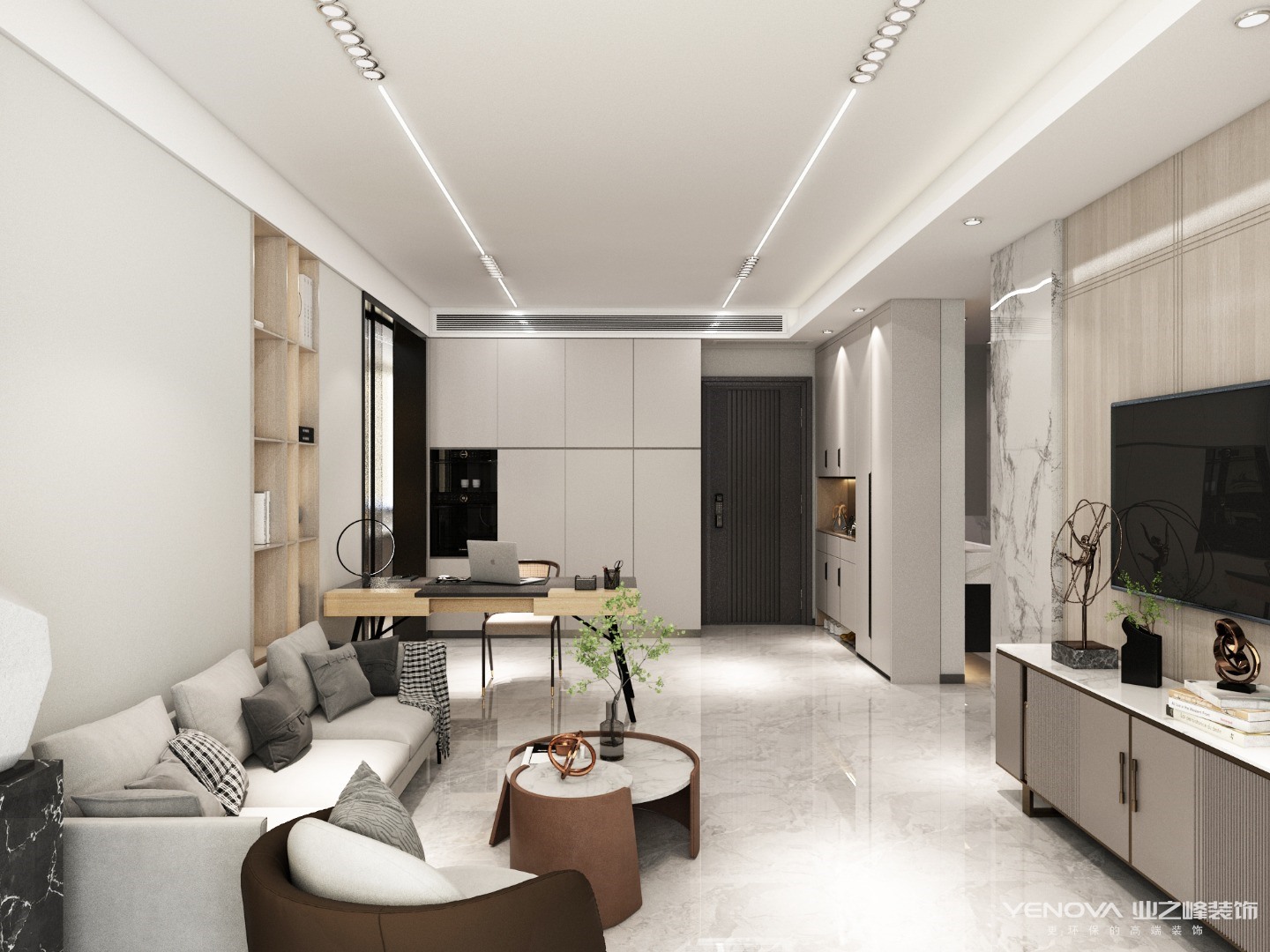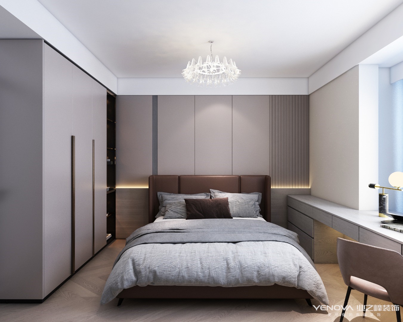 方案坐标天津河西区景隆大厦,方案对原有房间功能进行调换,客户喜欢原木纹,要求轻松温馨。经过方案商讨最终风格定义为现代轻奢。