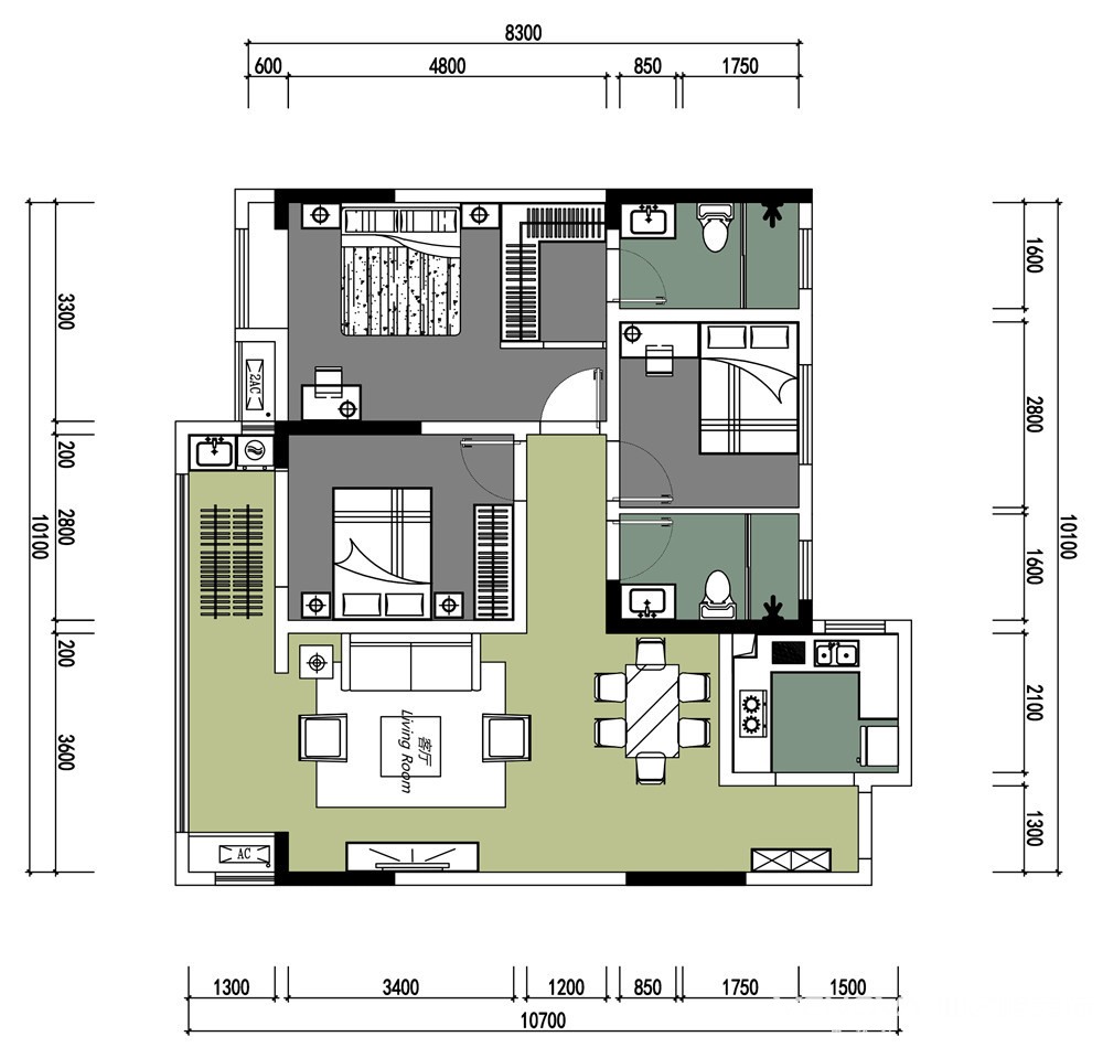 小区:传世温泉公馆 面积:115㎡ 户型:三居 风格:轻奢风格