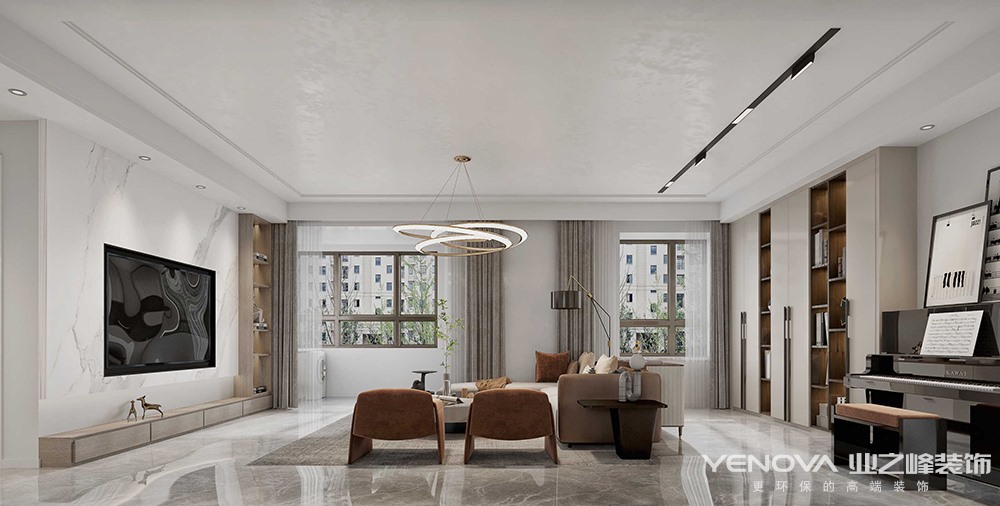 本案风格定义成现代简约风格,顾名思义,具备充分的时尚感,不论颜色的应用还是材质的使用都让这套房屋走在时尚的前沿,简约的装饰让人更能欣赏房子本身的美,也不用花大巴时间去打理