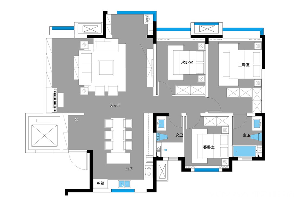 小区:雅居乐花园 面积:105㎡ 户型:三居 风格:现代简约风格