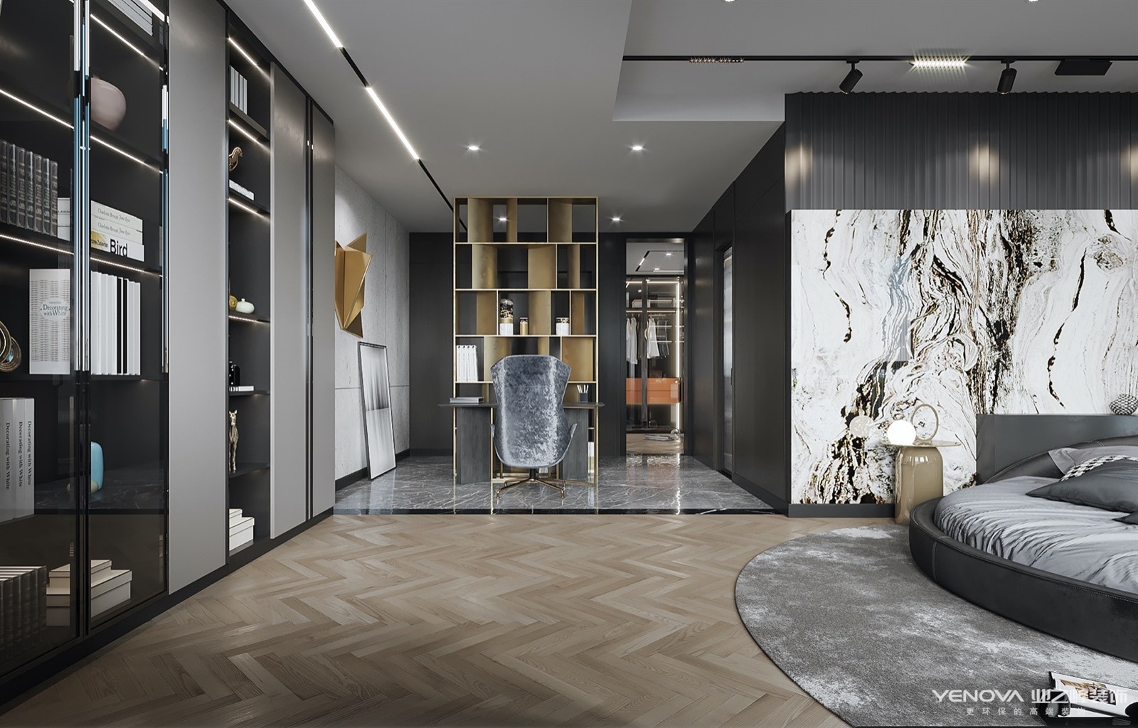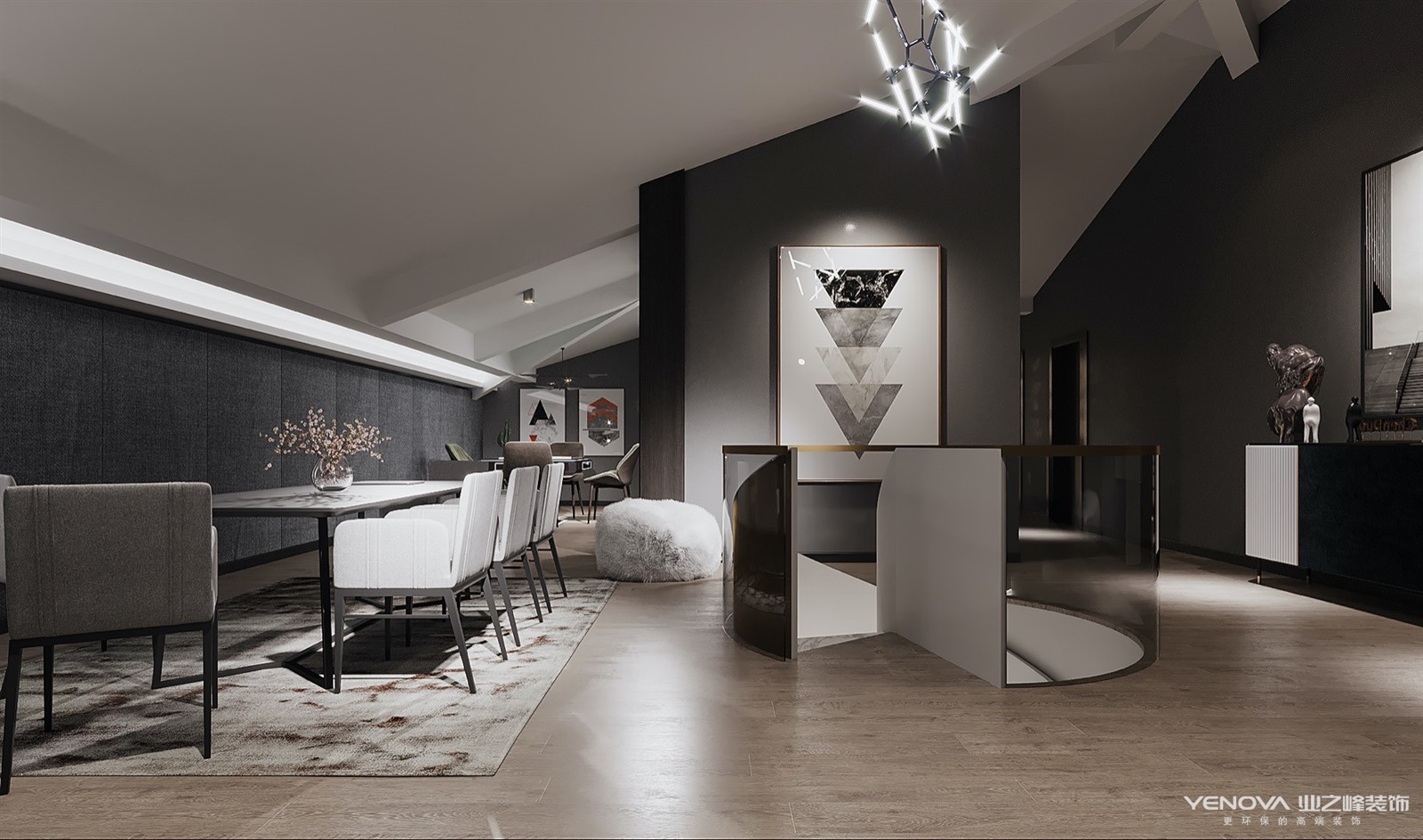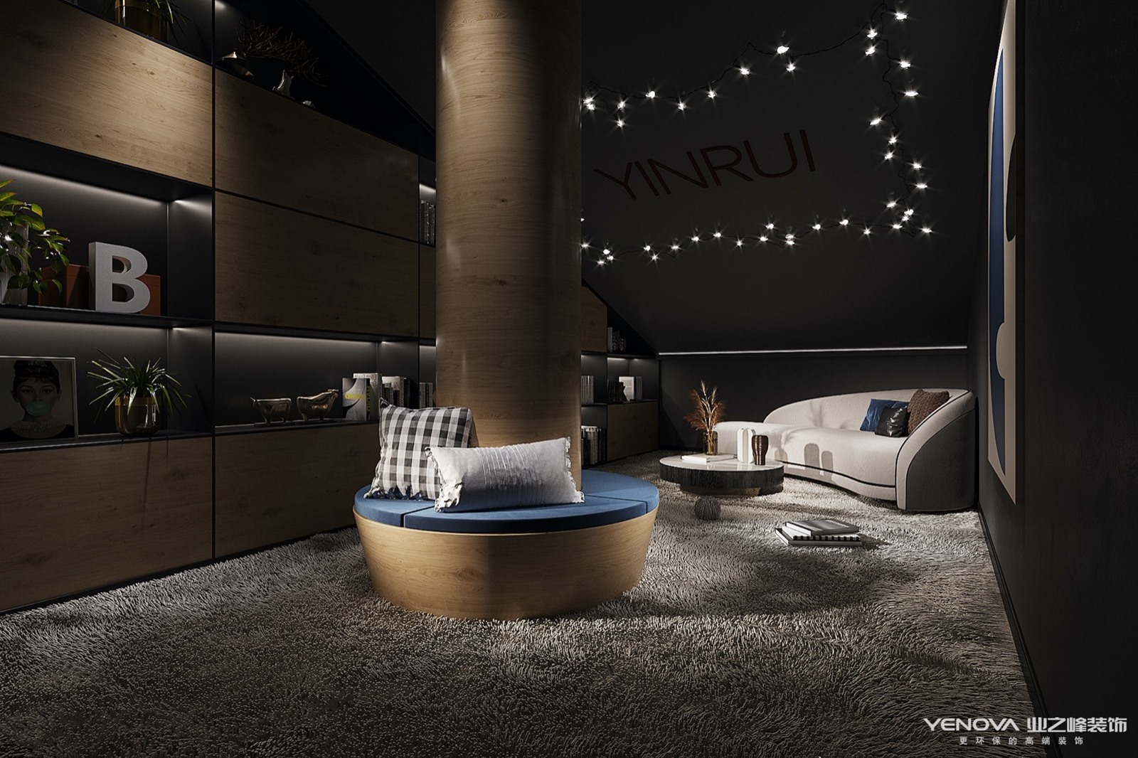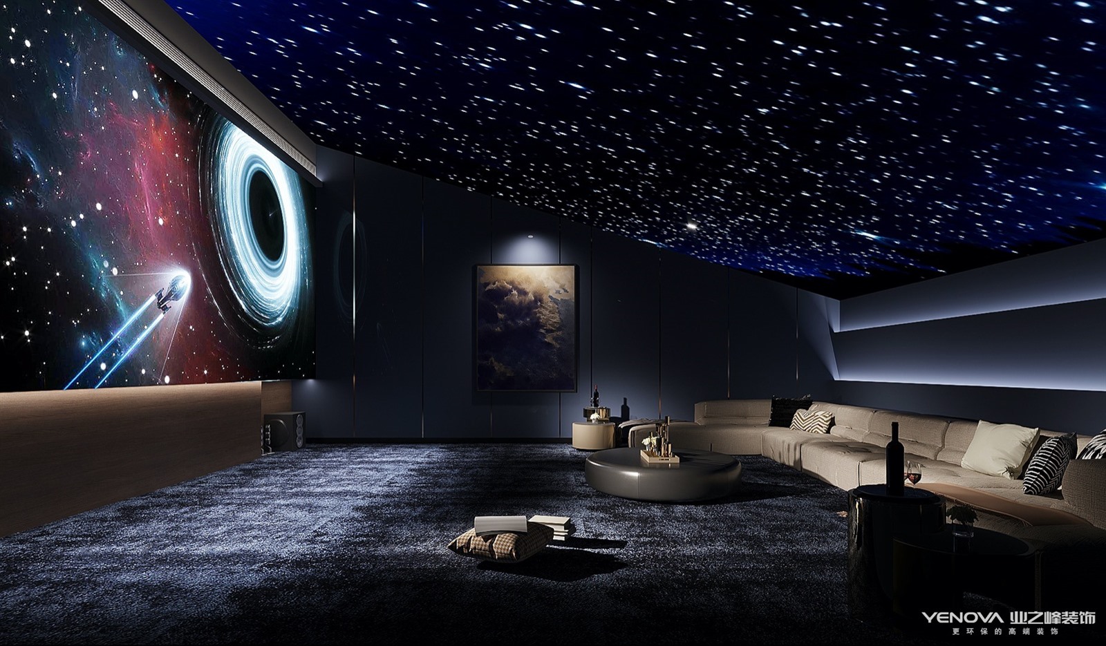 该案例为两层别墅,影院星空顶璀璨满地星色彩绚丽,光影柔和,气派而不失雅致,营造出愉悦、轻松的气氛,让空间充满了童话般的迷幻色彩。暗黑系搭配出高大、气派。