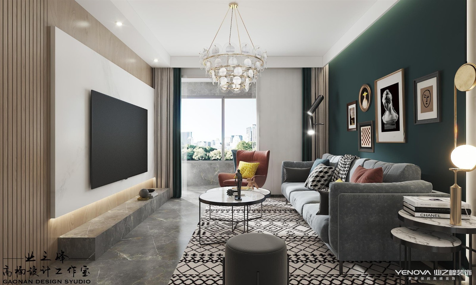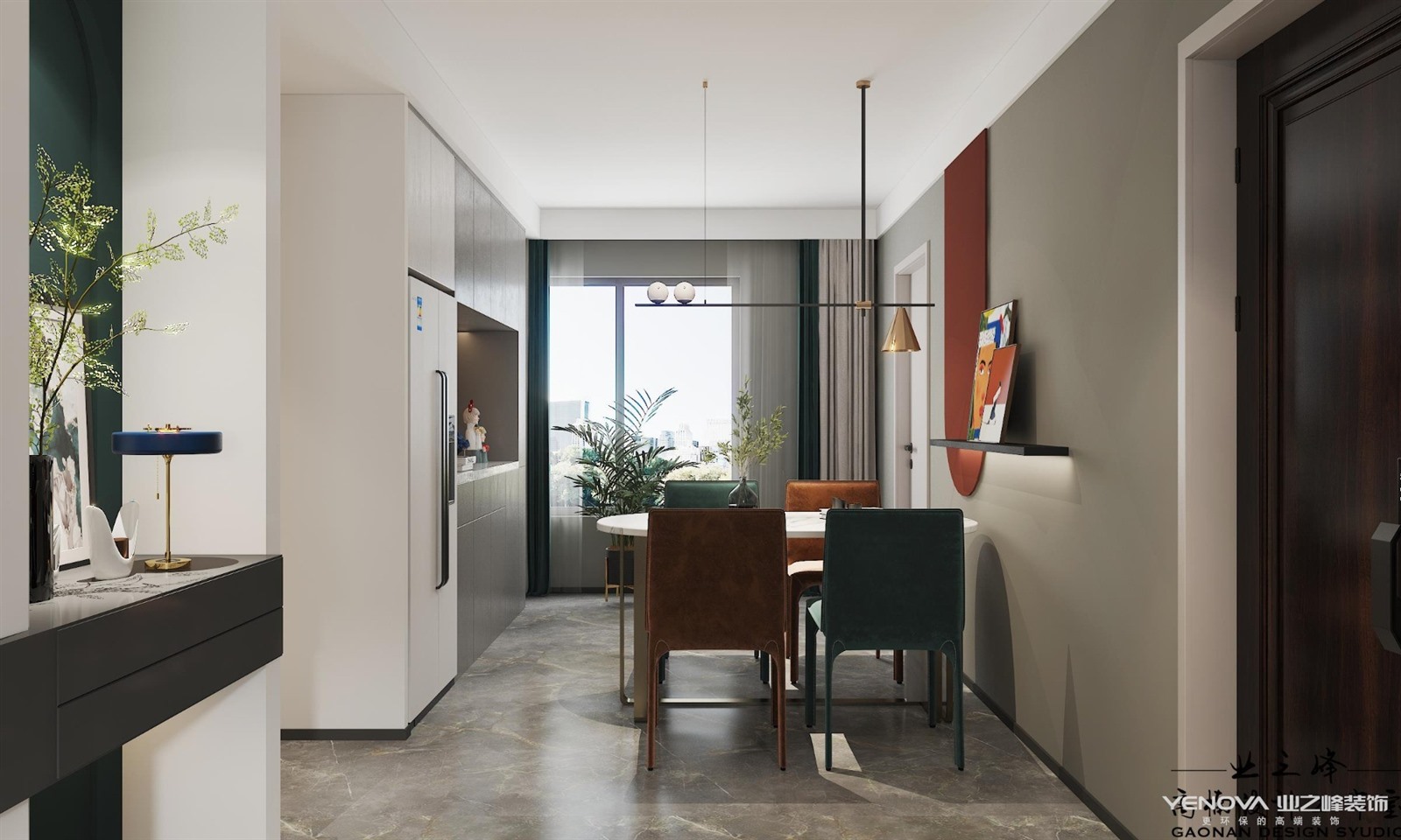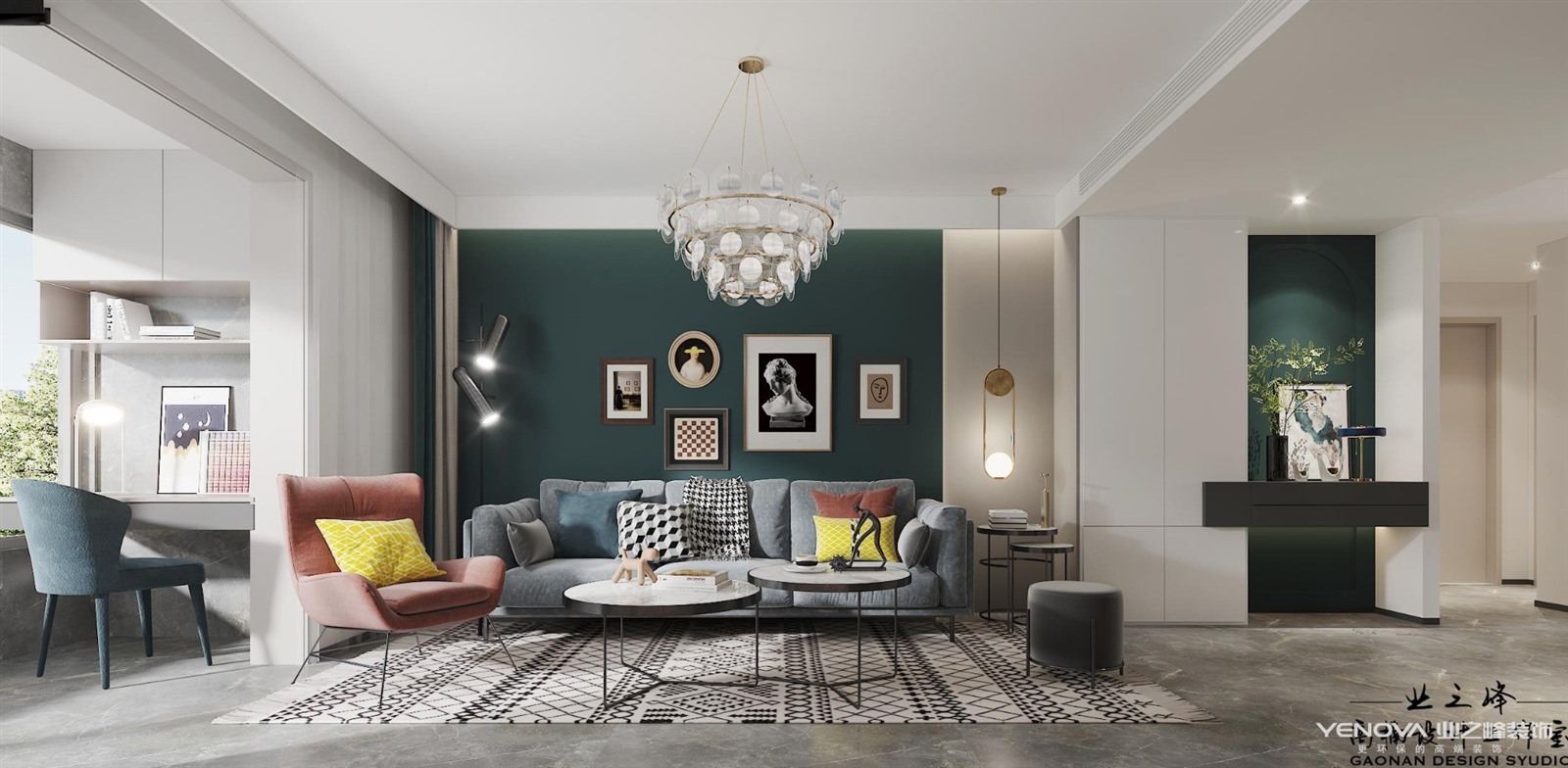 本案是杨柳春风123m²户型的案例,,北欧风格在选材,设计和工艺上都拥有纯正的北欧风格,在风格上沿袭北欧风格的一贯特点,精炼简洁,造型紧凑和线条明快。在家具选用上注重实用和自然,选用“万能色”白色为主色调和重要点缀色。墨绿色,红色等的搭配组合使用使的空间在时尚,优雅中不失温馨之感。布艺,木材,石材等多样材质的灵活运用也使得空间具有丰富层次感。