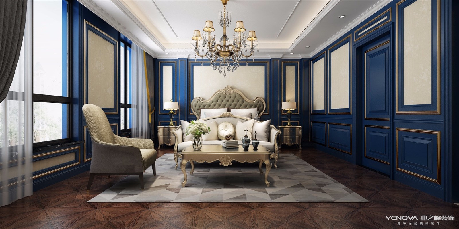 本次方案设计地址为永威紫园,400平米,法式风格。客餐厅采用白、金、深棕等木色作为主调,在通过洗白处理来表现其独有的内敛气质,能打造出华丽、典雅之感。繁复而精细、考究的细节设计卧室布局上运用了法式的线条,布局上突出轴线的对称,恢弘的气势,豪华舒适的居住空间。配色上包括“海”与“天”明亮的色彩,仿佛被水冲刷过后的白墙,形成强烈的视觉冲击。从整体上营造出一种高贵之气,不论是床头台灯造型,抑或是窗前的一把端庄的椅子,在任何一个角落,都能体会到主人悠然自得的心境。