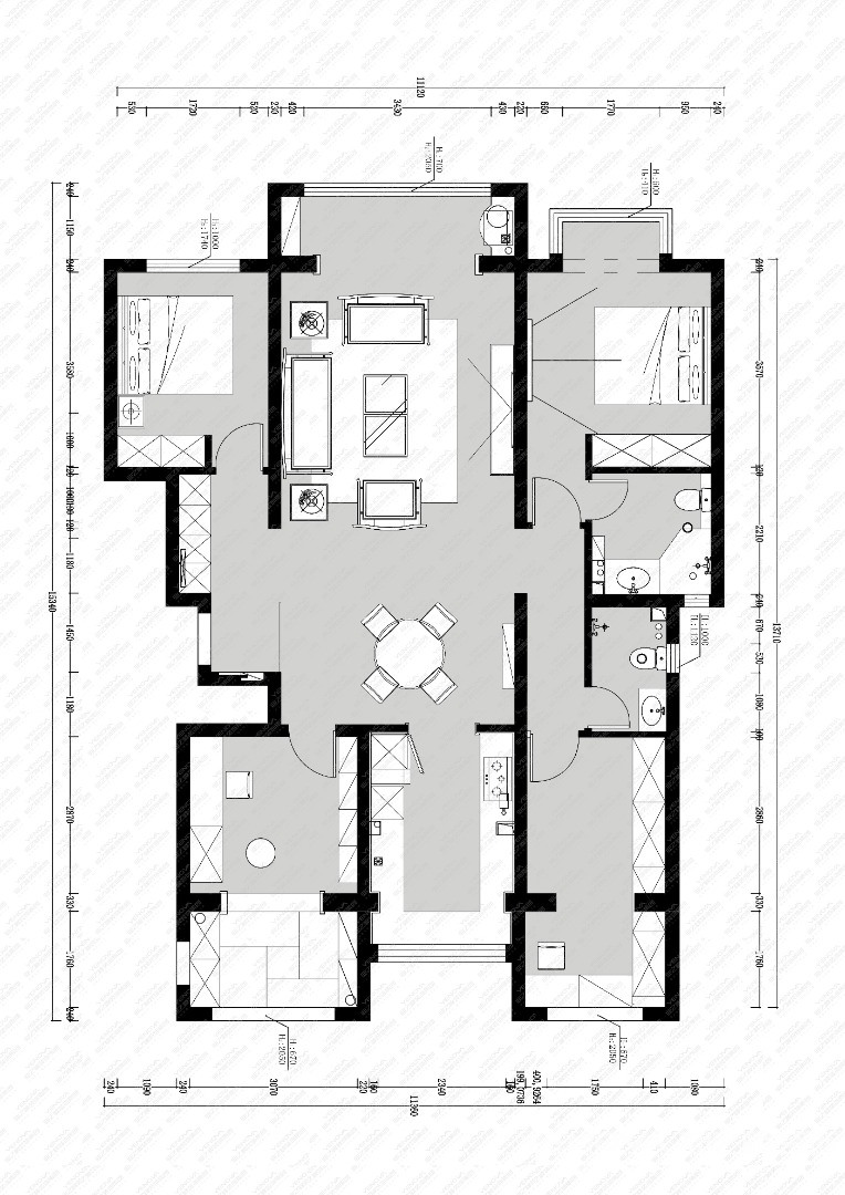 小区:富立秦皇半岛 面积:138㎡ 户型:三居 风格:新中式风格