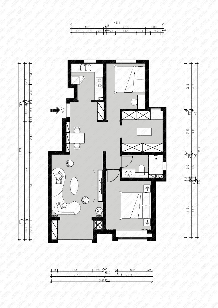 小区:孔雀城 面积:95㎡ 户型:二居 风格:法式风格