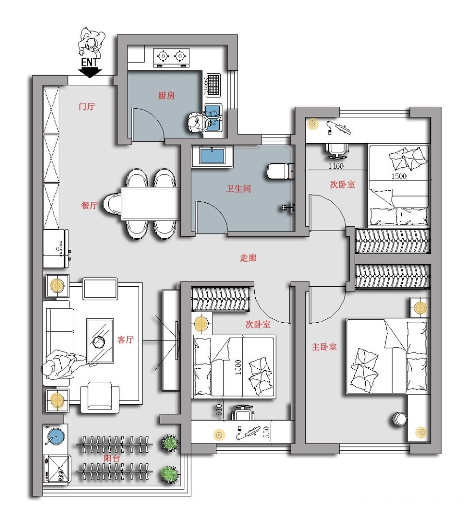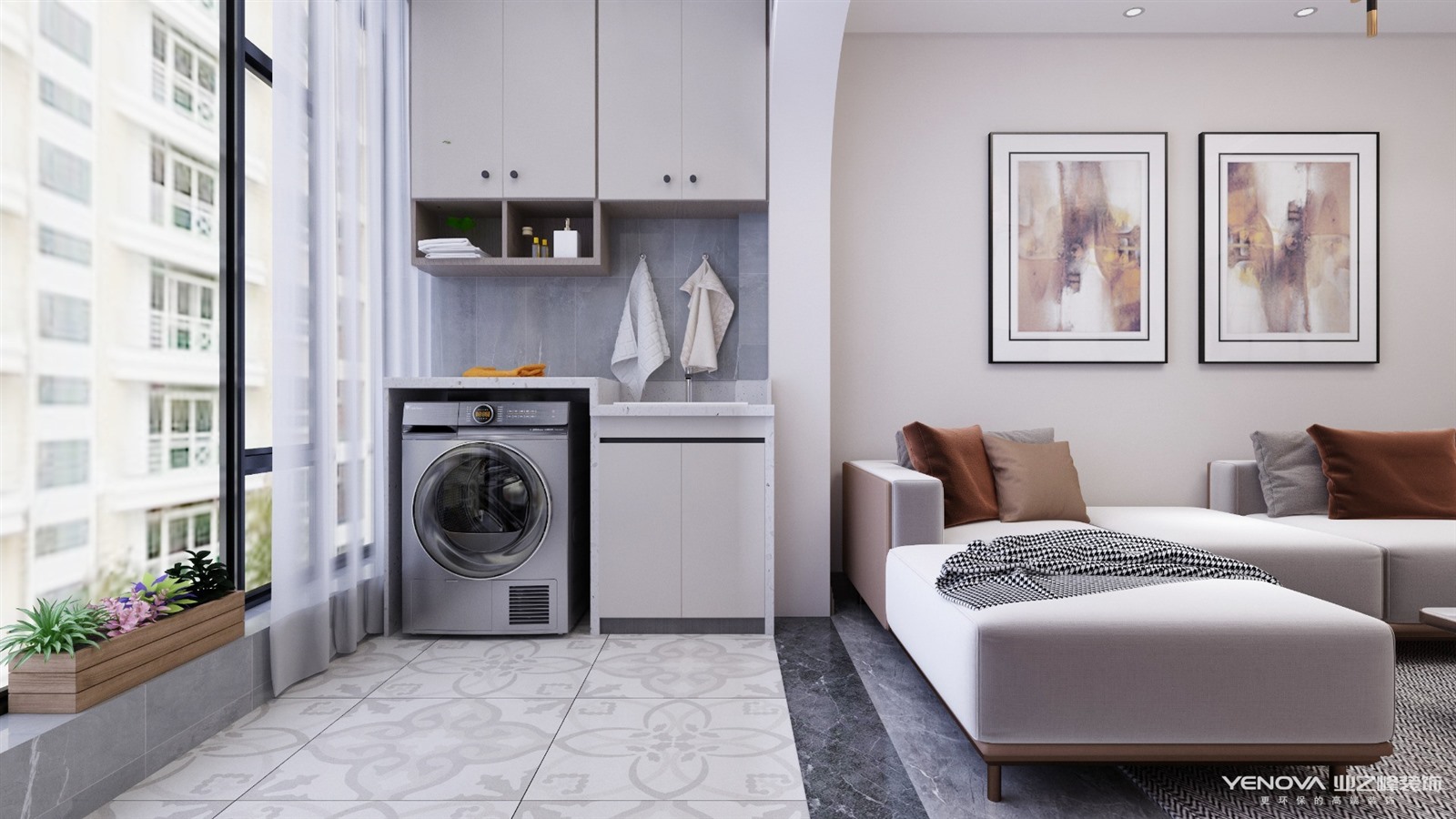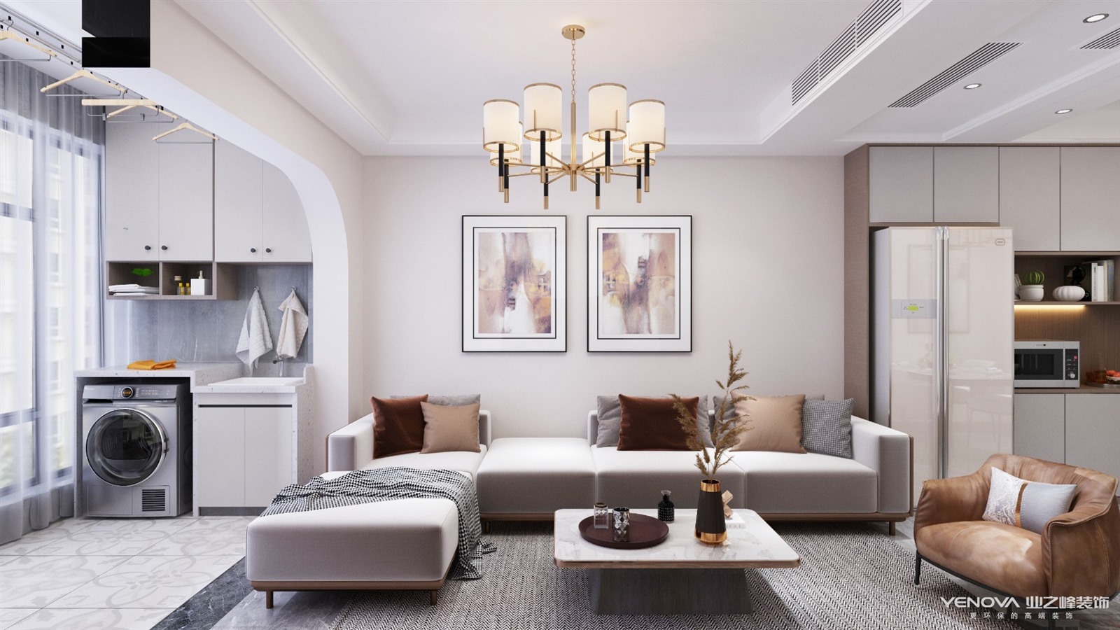 小区:融创金水府 面积:113㎡ 户型:三居 风格:现代简约风格