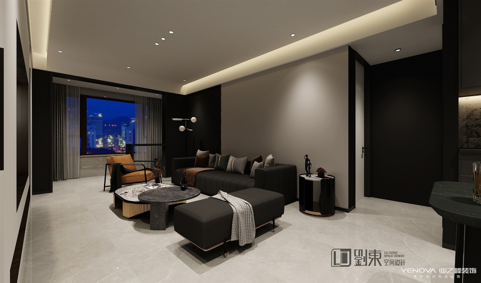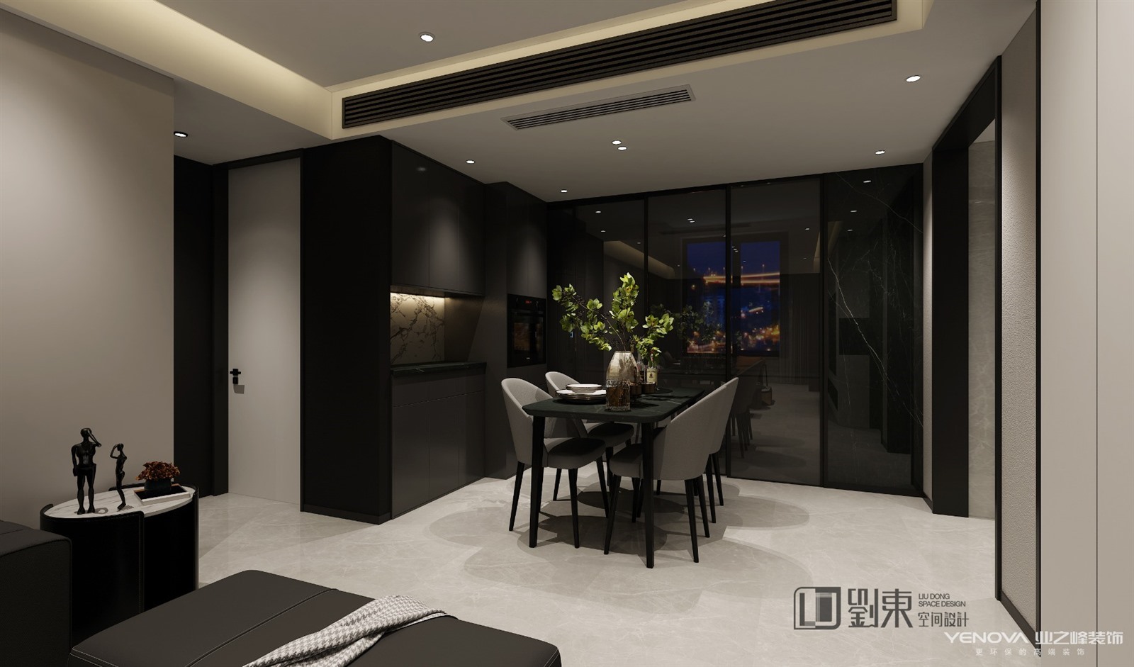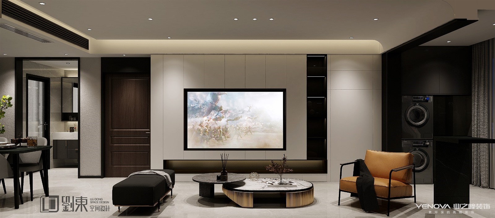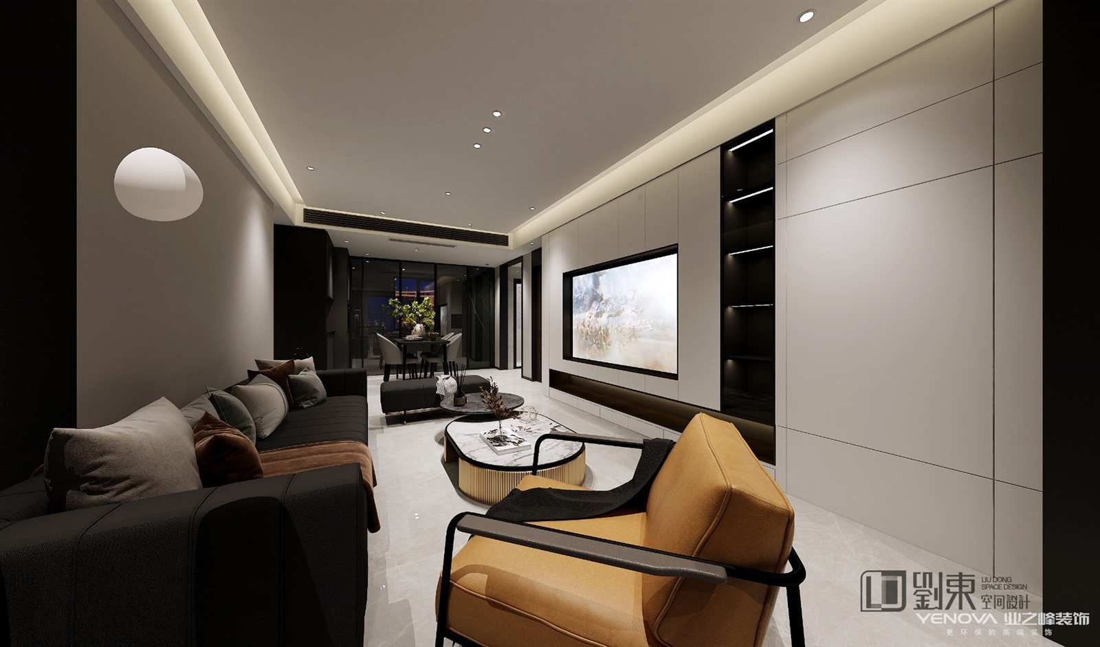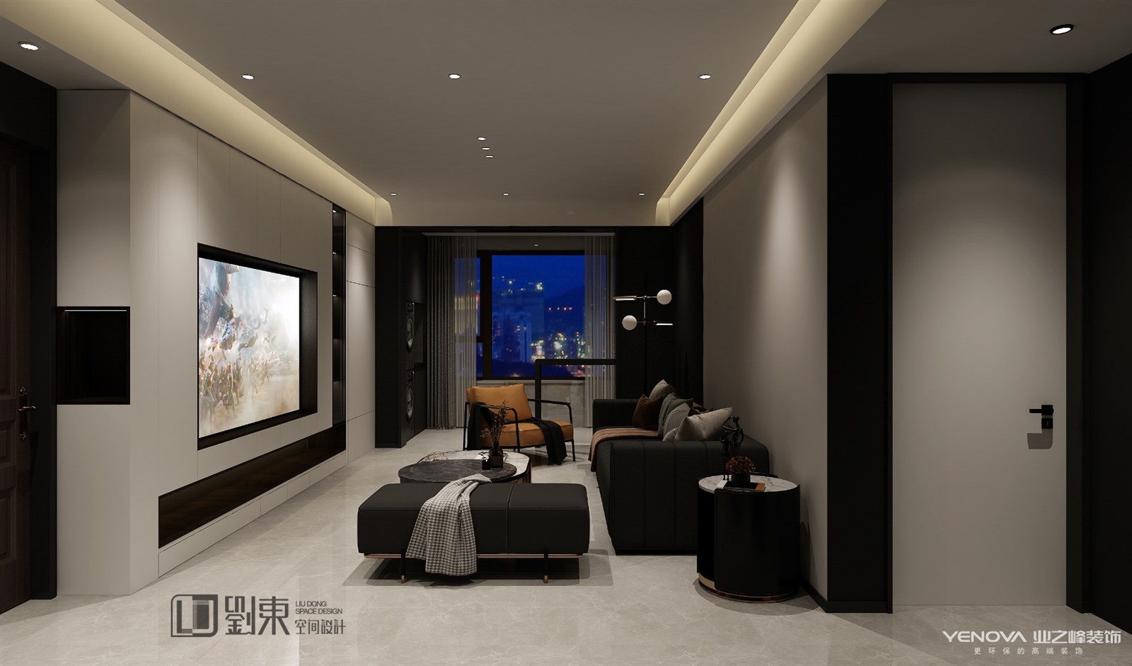 该案例是一对年轻的夫妇,业主提出来无主灯设计,喜欢那种氛围光带来的视觉冲击,不喜欢繁琐的设计。影视墙用储物柜来代替,没有用传统的大理石和木墙板,整体颜色以黑白灰为主。享受夜幕下带来的视觉盛宴。厨房4联动的推拉门让餐餐厨房,亦敞开亦封闭,享受二人世界带来的生活细节。