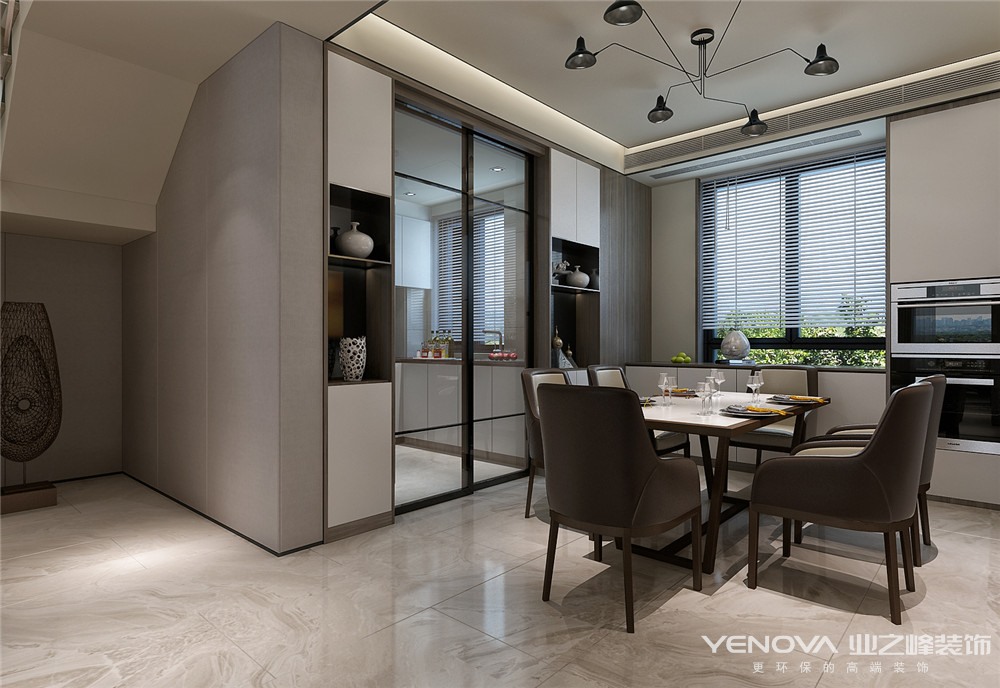 1. 为增加入户的仪式感,将原门口处的楼梯改动位置,空出来做通体门厅柜,并拆掉阳台隔墙,做处大厨房与大餐厅的通透格局,并形成独立中西厨格局,增加就餐的体验感.